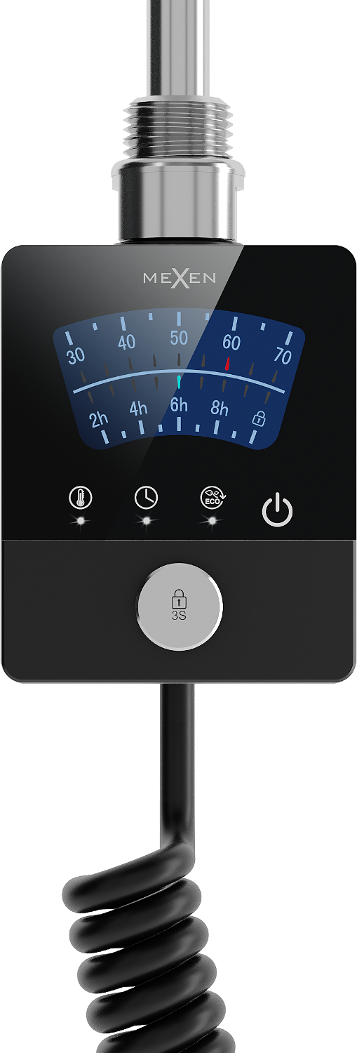 Mexen FA-BG8 elektrické topné těleso 300 W v černé barvě je pokročilé technologické zařízení, které zajišťuje efektivní vytápění. S celkovou délkou 409 mm a topným prvkem o délce 310 mm je ideální pro různé použití. Topné těleso nabízí funkce jako Sensitive (nastavení teploty s přesností do 5 stupňů), Comfort (sušící možnost), Smart (týdenní harmonogram činností), ECO (úspora energie), Anti-frost (ochrana před zamrznutím) a dětská pojistka.
