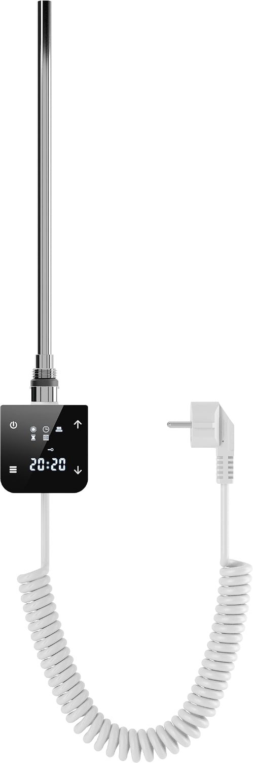 Mexen FA-05W elektrické topné těleso 450 W je vynikající volba pro vaši koupelnu. S výkonem 450 W a provozním napětím 230V/50 Hz zajišťuje efektivní vytápění. Délka topného elementu 415 mm a bílá barva se skvěle hodí do většiny interiérů. Topné těleso nabízí pokročilé funkce, jako je volba teploty (30°C-70°C), možnost sušení, týdenní harmonogram provozu, úsporný režim do 30°C, ochrana před zamrznutím pod 7°C a dětská pojistka pro bezpečnost. LED displej usnadňuje monitorování provozu a stupeň ochrany IP44 zajišťuje odolnost.