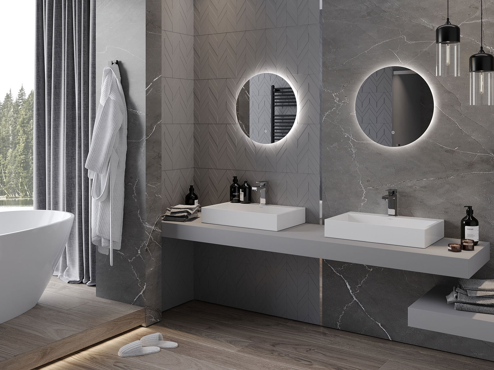 LED podsvícení u zrcadla je praktický prvek, který usnadňuje každodenní péči díky možnosti ideálního osvětlení obličeje. Podsvícení dodává koupelně moderní vzhled a zdůrazňuje její elegantní výzdobu.