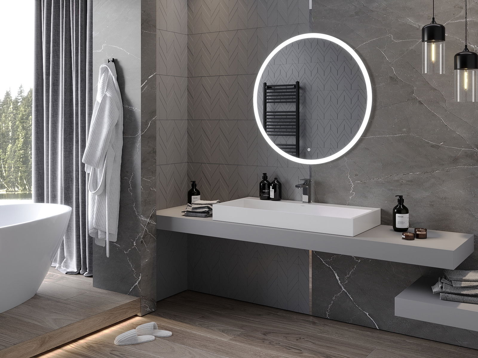 LED podsvícení u zrcadla je praktický prvek, který usnadňuje každodenní péči díky možnosti ideálního osvětlení obličeje. Podsvícení dodává koupelně moderní vzhled a zdůrazňuje její elegantní výzdobu.