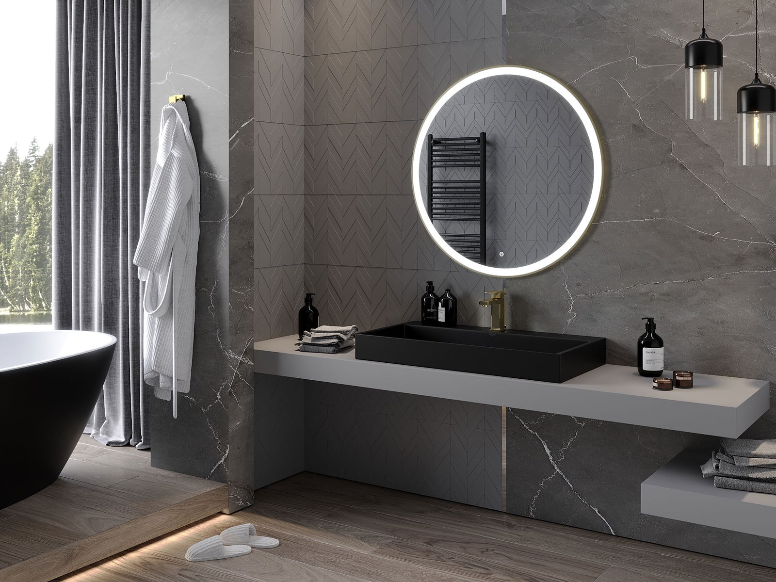 LED podsvícení u zrcadla je praktický prvek, který usnadňuje každodenní péči díky možnosti ideálního osvětlení obličeje. Podsvícení dodává koupelně moderní vzhled a zdůrazňuje její elegantní výzdobu.
