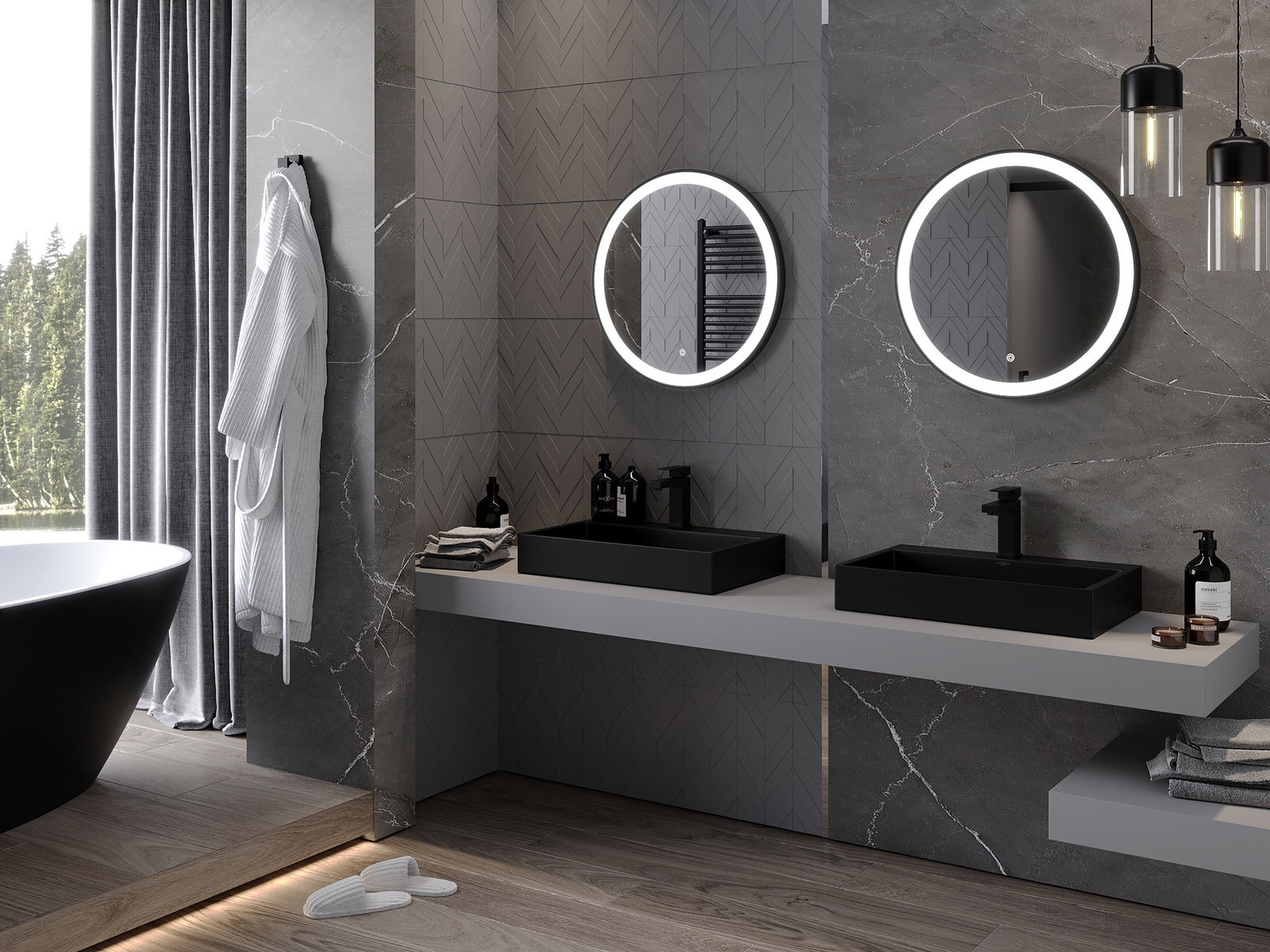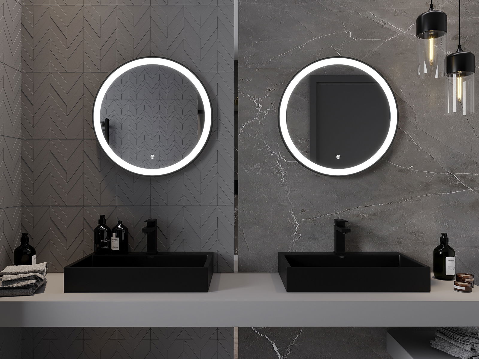 Mexen Esso kulaté koupelnové zrcadlo s podsvícením, 60 cm, LED 6000K, proti zamlžování, černý rám - 9825-060-060-611-70