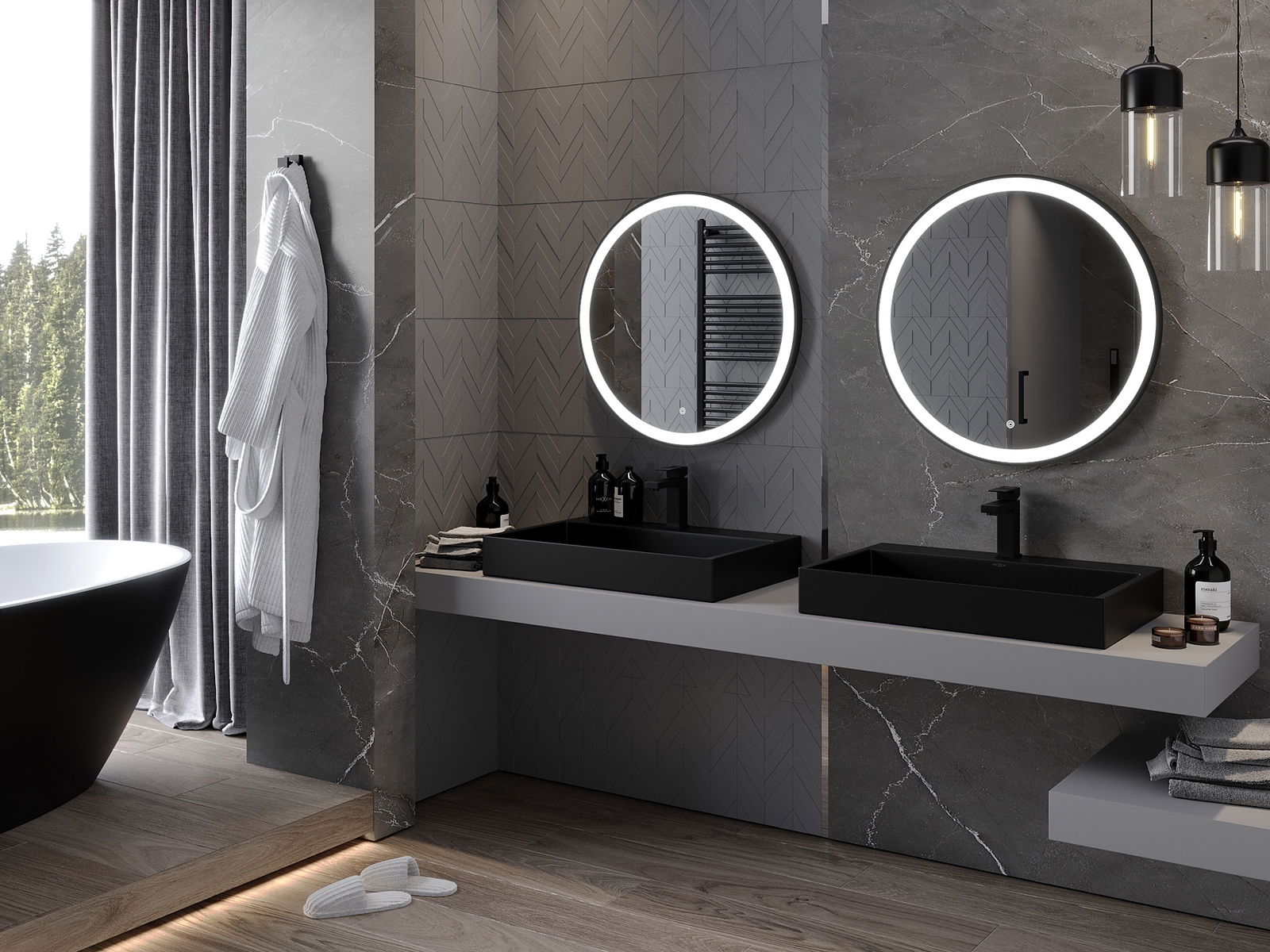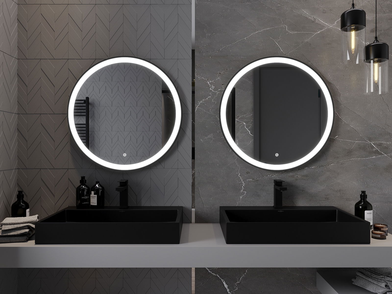 Mexen Esso podsvícené koupelnové zrcadlo, kulaté 70 cm, LED 6000K, proti mlze, černý rám - 9825-070-070-611-70