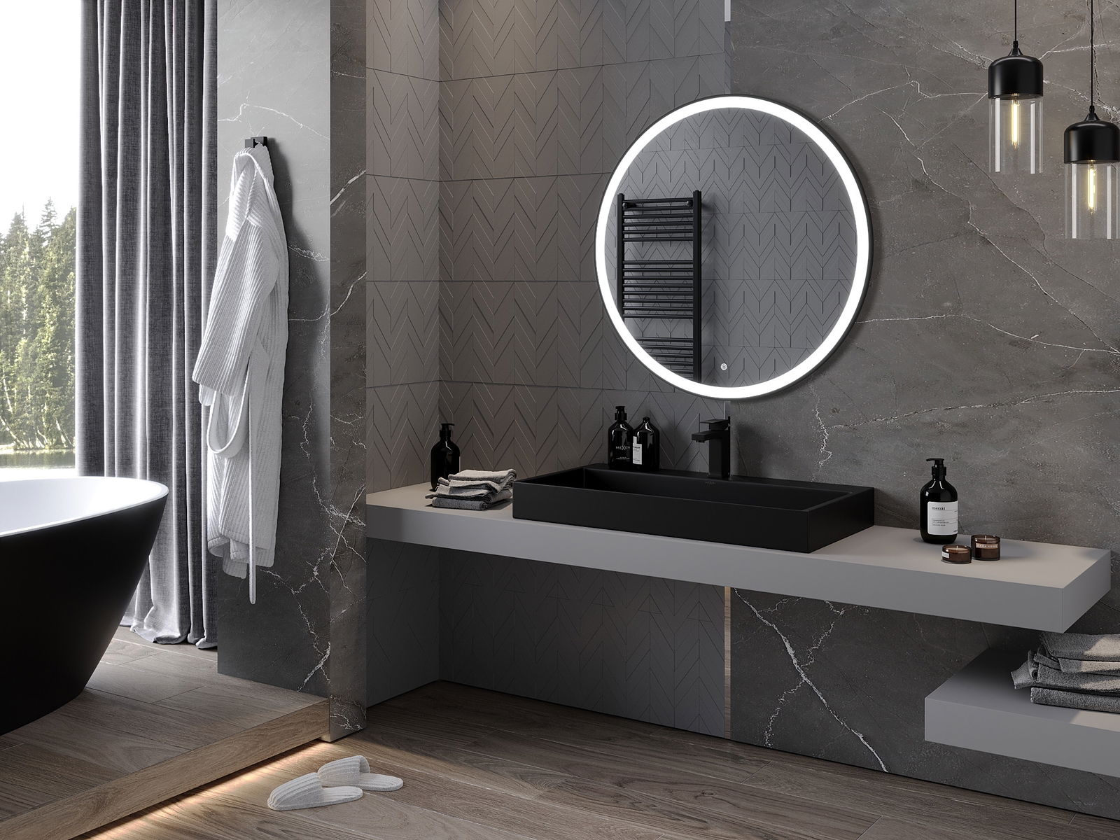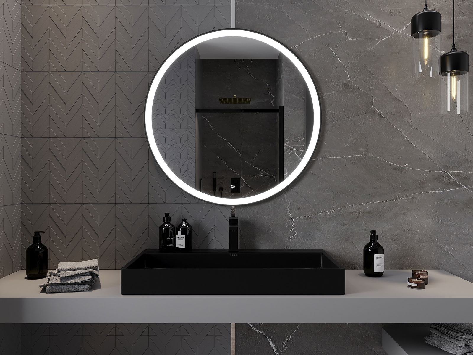Mexen Esso kulaté koupelnové zrcadlo s podsvícením, kulaté 90 cm, LED 6000K, proti zamlžení, černý rám - 9825-090-090-611-70