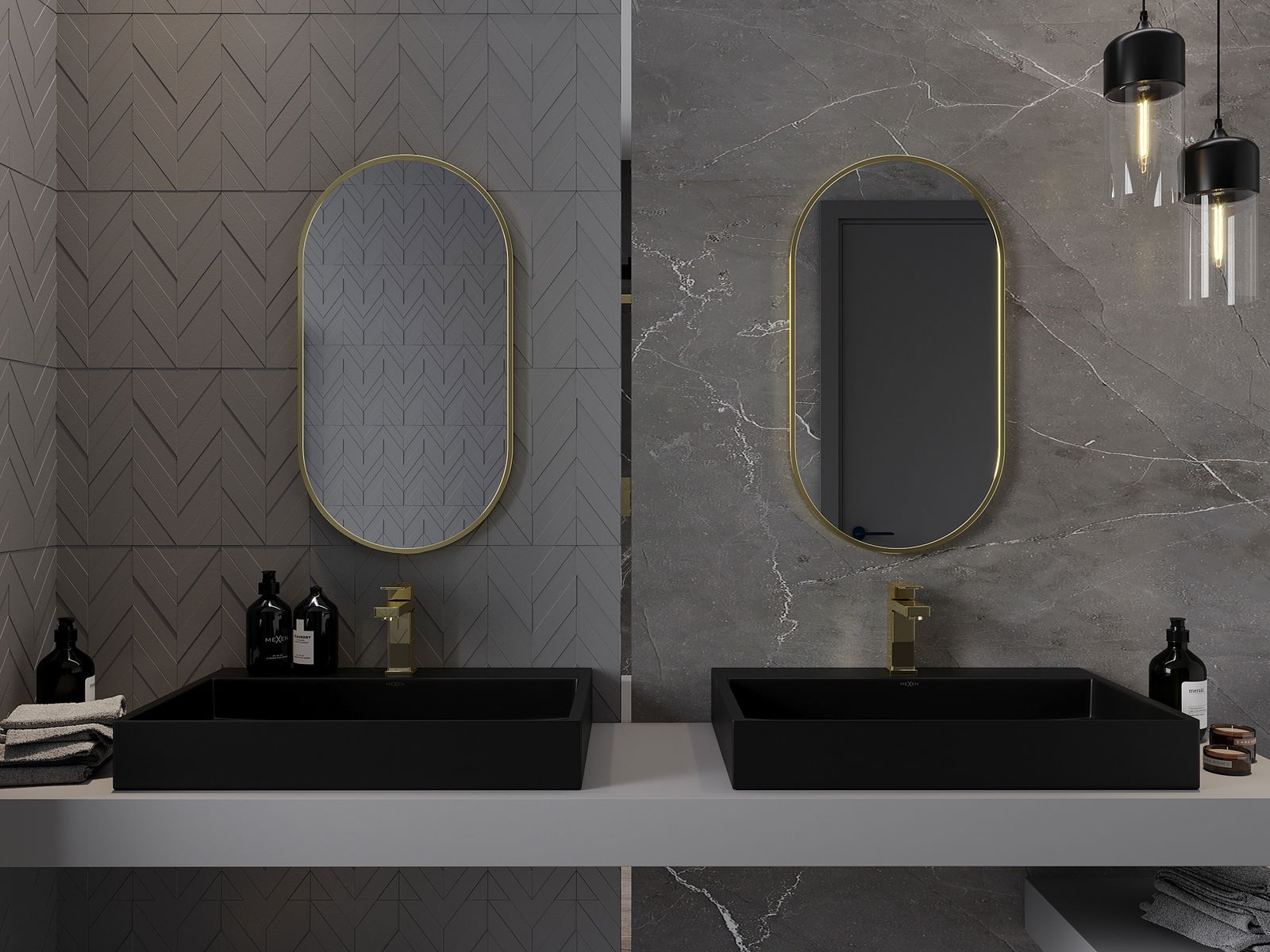 Mexen Loft oválné zrcadlo do koupelny 75 x 40 cm, zlatý rám - 9851-075-040-000-50