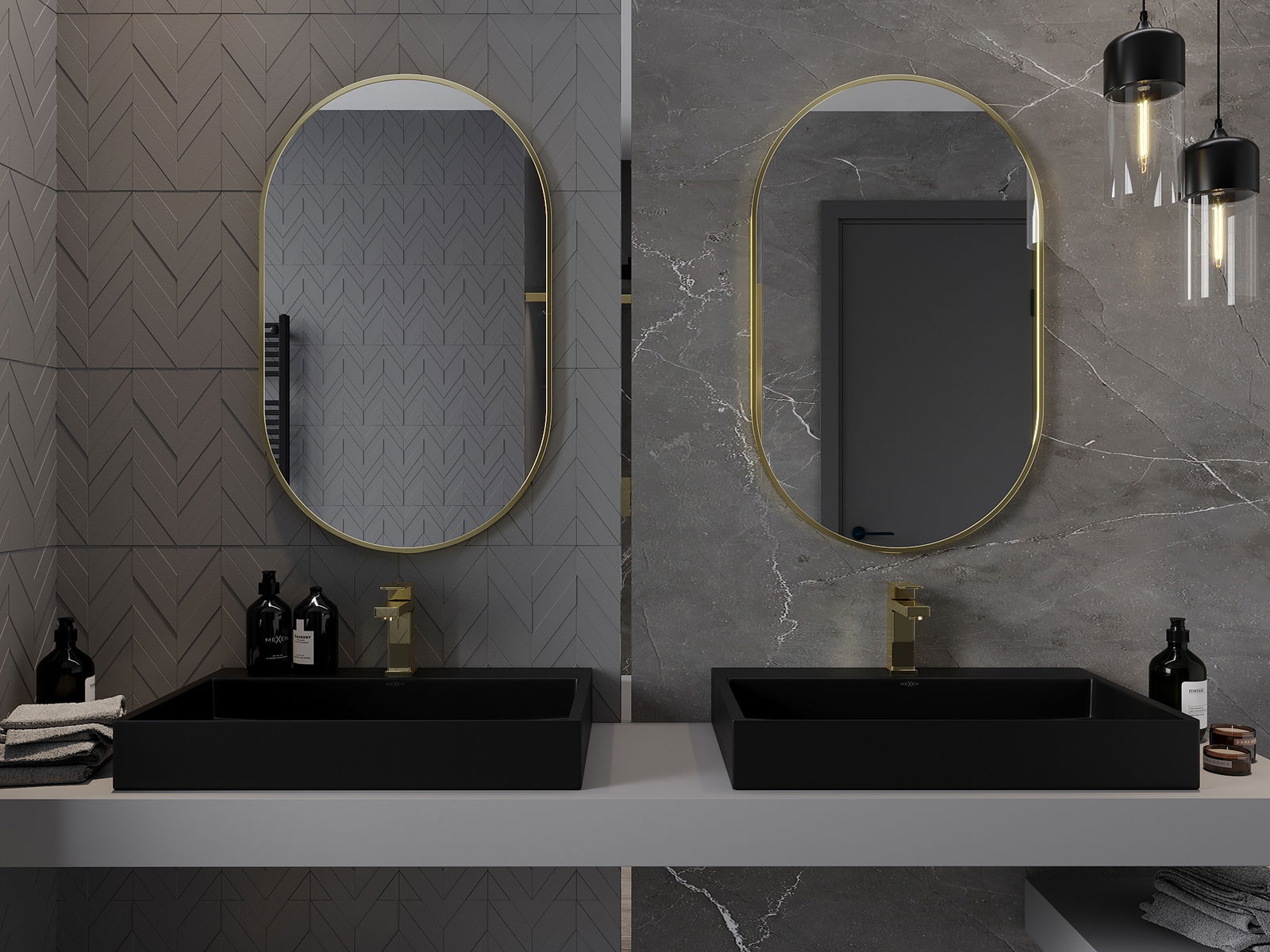Mexen Loft oválné koupelnové zrcadlo 90 x 55 cm, zlatý rám - 9851-090-055-000-50
