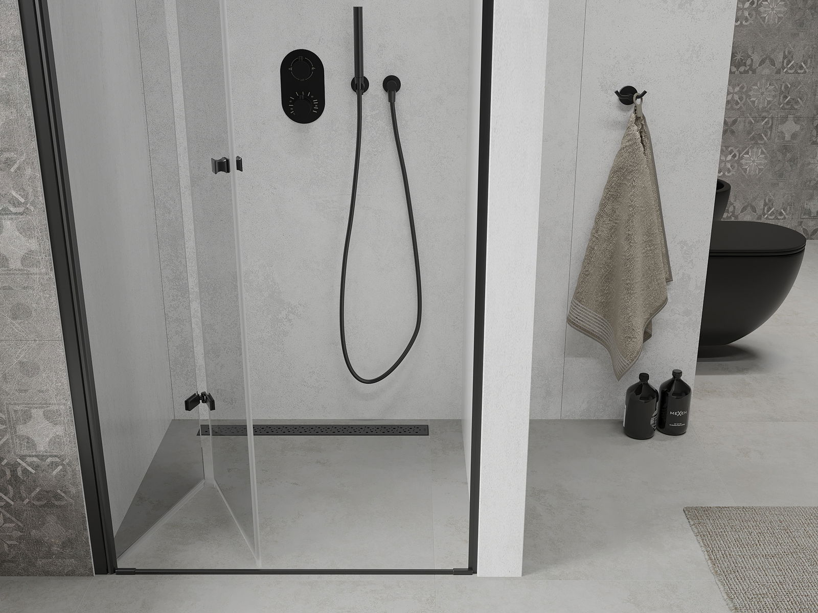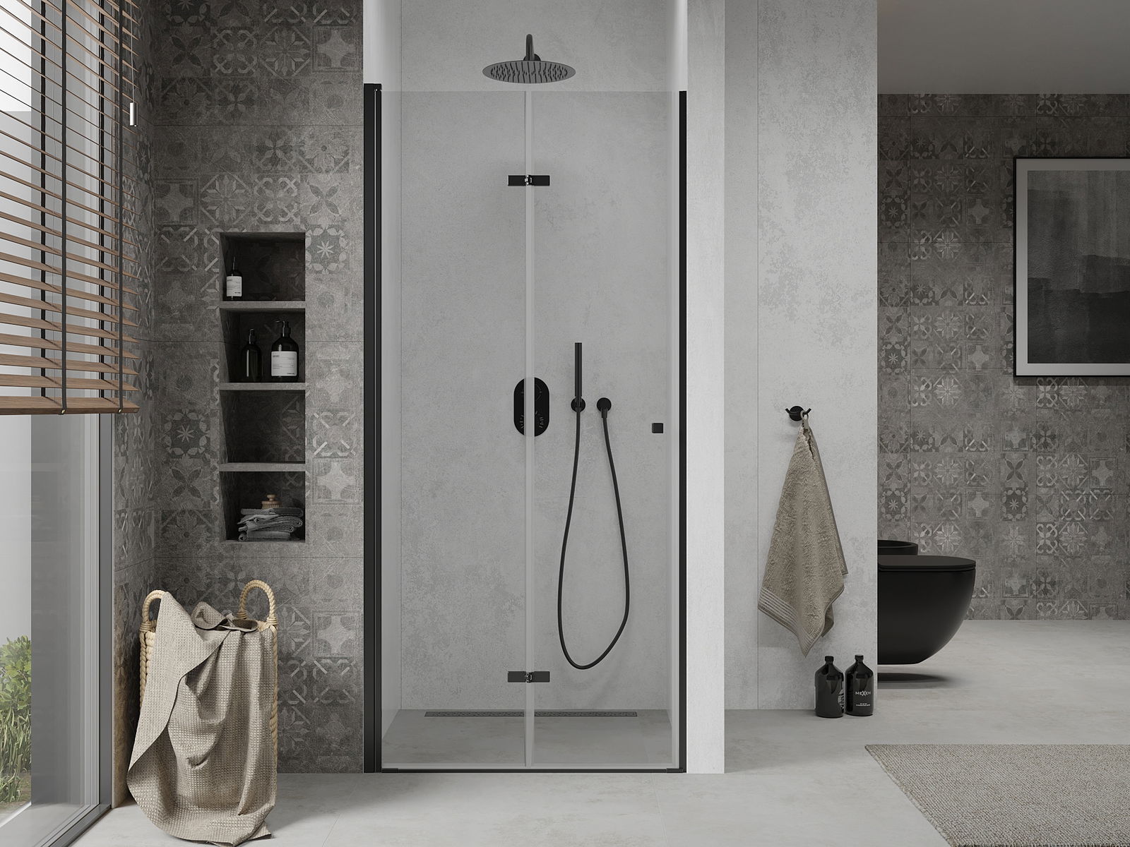 Možnost skládání dveří, jak dovnitř, tak ven, umožňuje získat více prostoru při nepoužívání sprchy. Je to ideální řešení pro menší koupelny, maximálně využívající dostupný prostor.