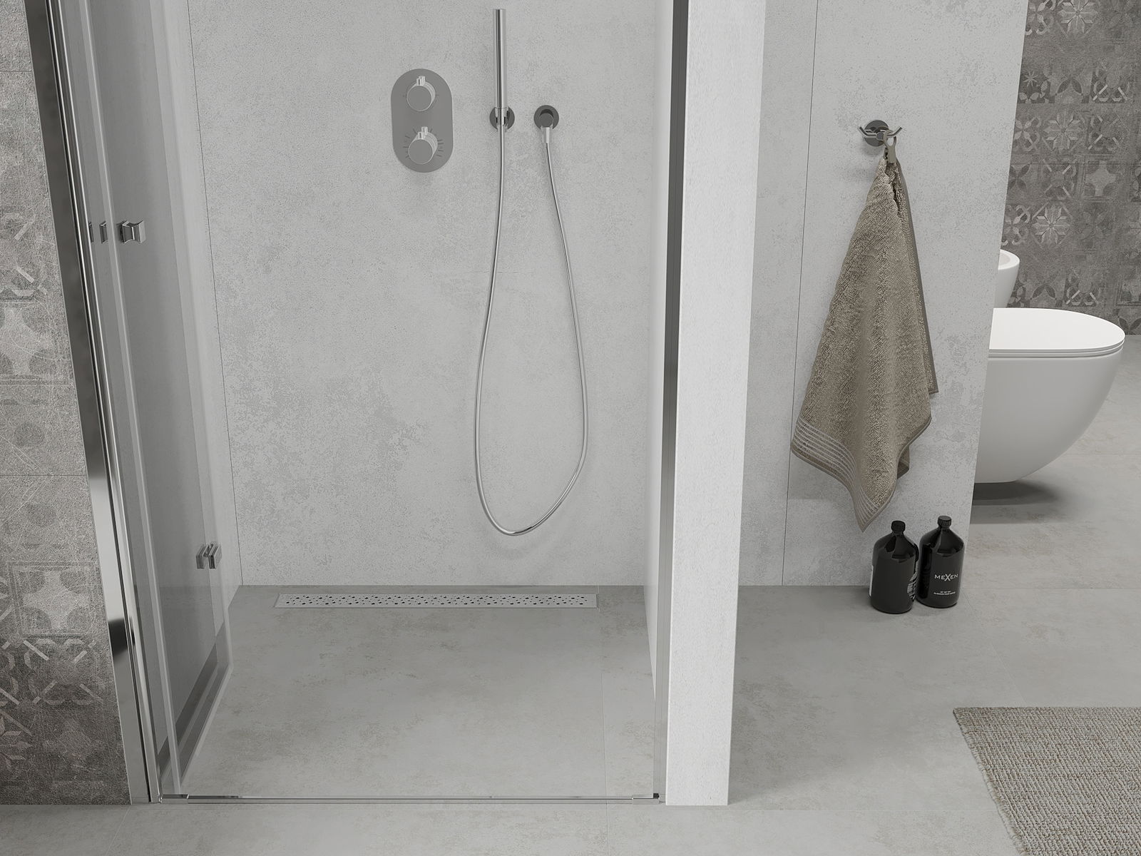 Produkt lze podle potřeby namontovat jak na sprchovou vaničku, tak přímo na podlahu. Univerzální způsob montáže umožňuje přizpůsobení produktu různým typům koupelen a konfiguracím prostor.