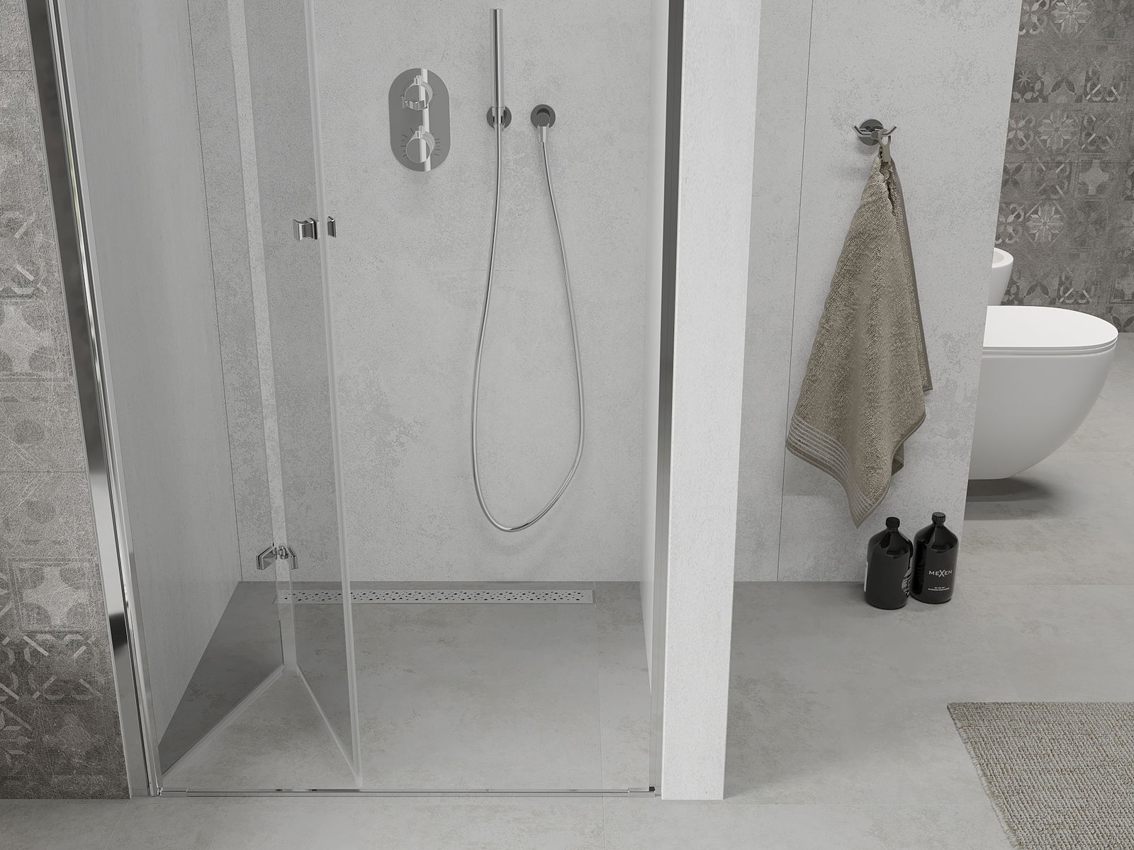 Možnost skládání dveří, jak dovnitř, tak ven, umožňuje získat více prostoru při nepoužívání sprchy. Je to ideální řešení pro menší koupelny, maximálně využívající dostupný prostor.