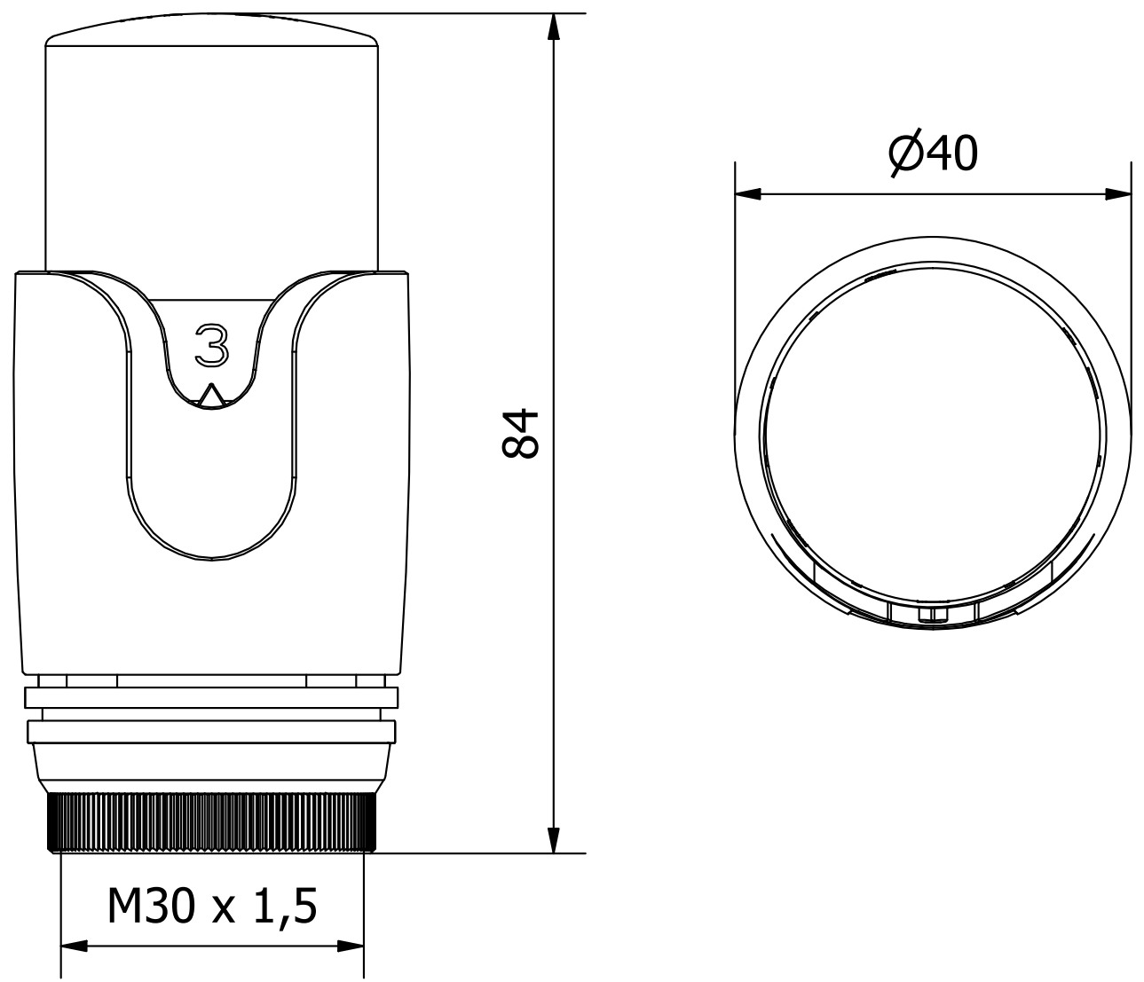 Jedná se o standardní velikost závitu používanou v mnoha termostatických hlavicích, zejména v zařízeních používaných v topných instalacích. Symbol M30 znamená, že vnější průměr závitu je 30 mm a 1,5 mm - stoupání závitu je 1,5 mm.
