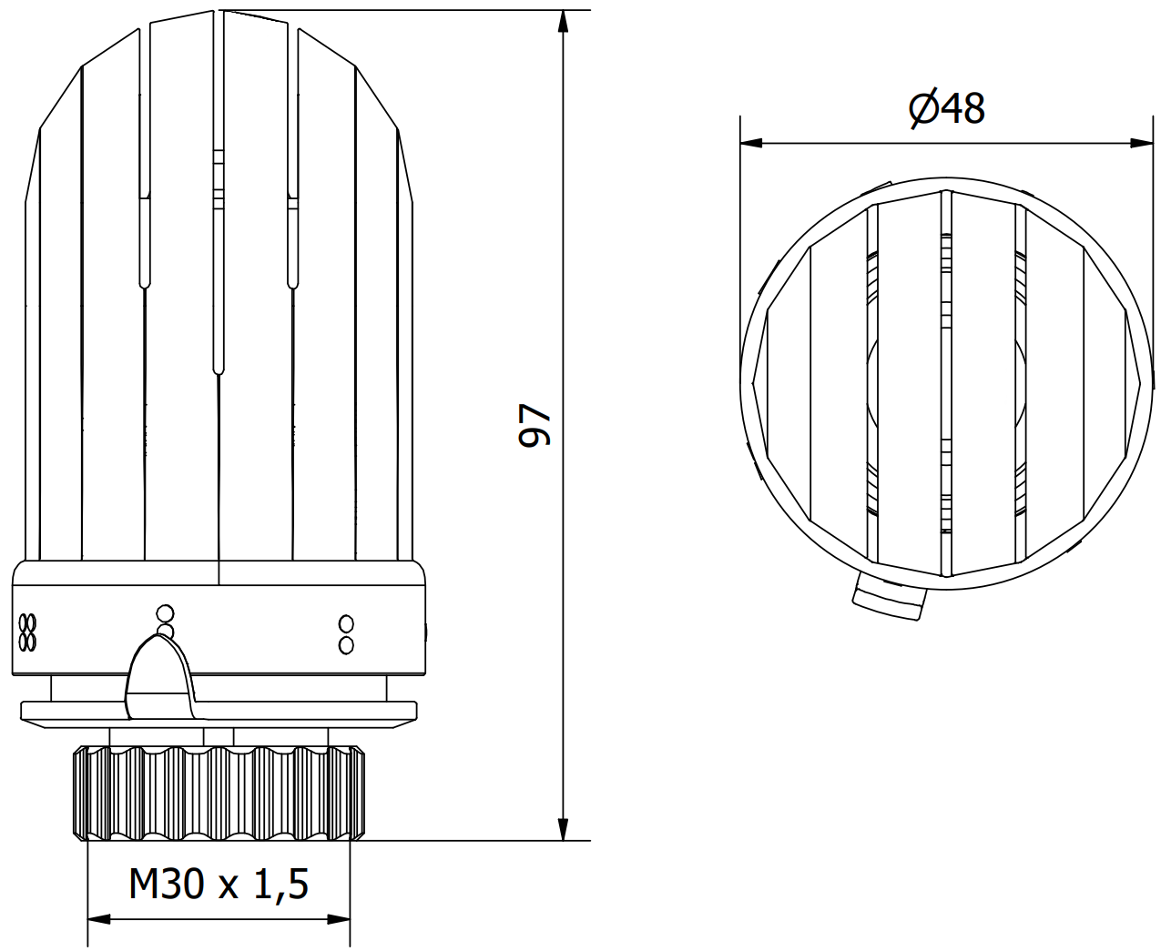 Jedná se o standardní velikost závitu používanou v mnoha termostatických hlavicích, zejména v zařízeních používaných v topných instalacích. Symbol M30 znamená, že vnější průměr závitu je 30 mm a 1,5 mm - stoupání závitu je 1,5 mm.
