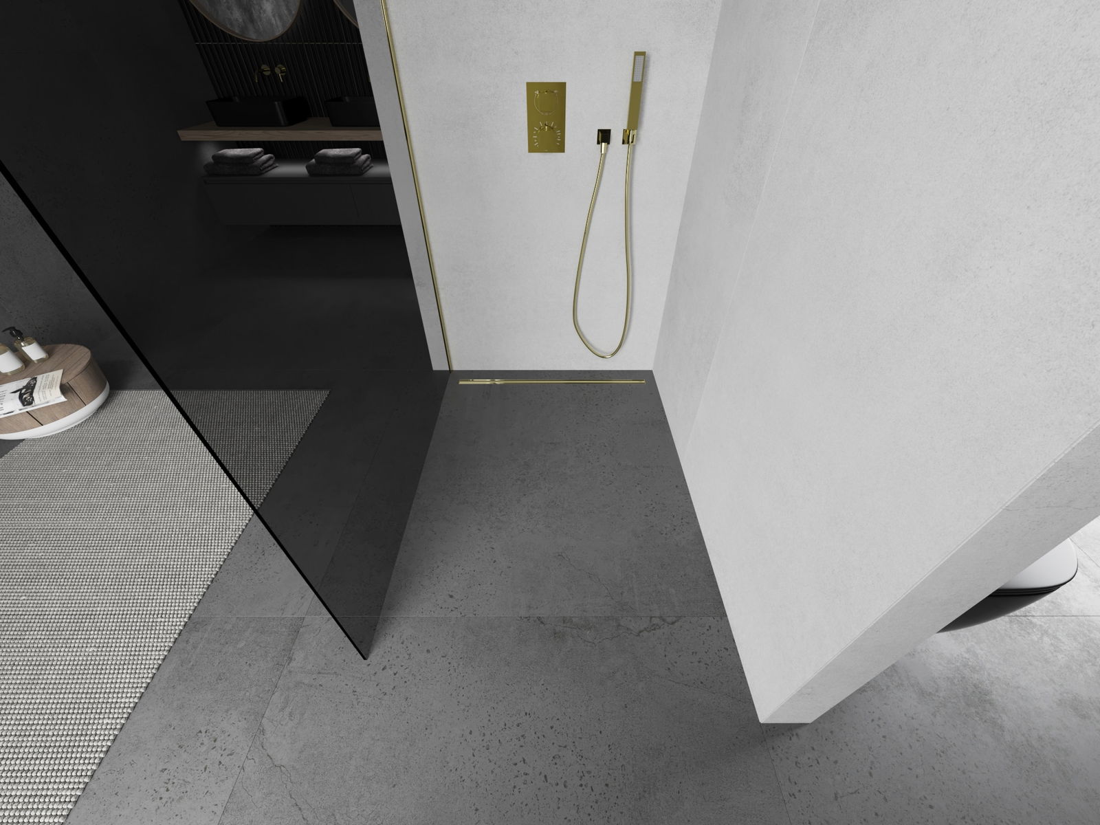Mexen Kioto sprchová stěna Walk-in 70 x 200 cm, grafit 8 mm, zlatá - 800-070-101-50-40