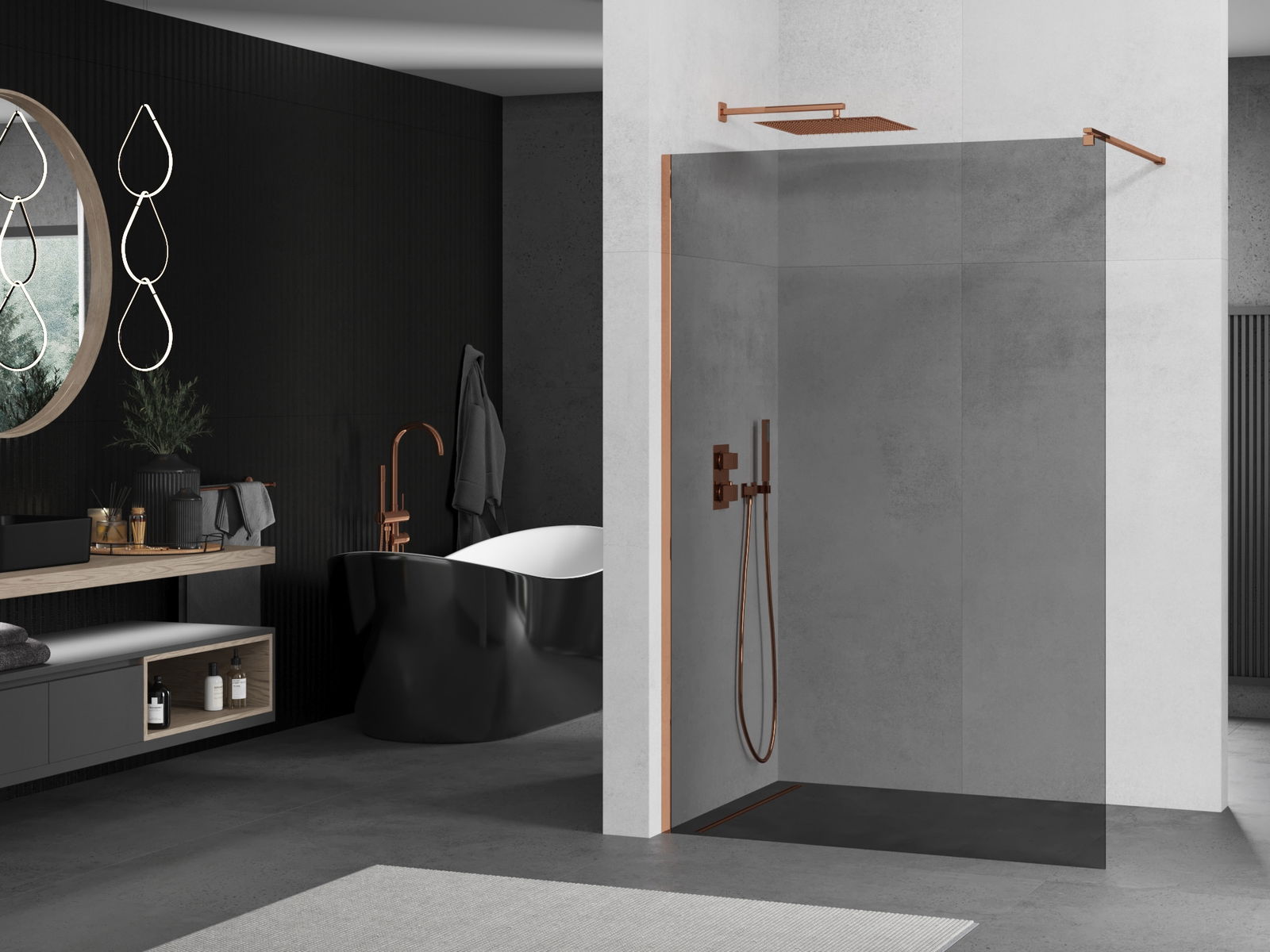 Mexen Kioto sprchová stěna Walk-in 100 x 200 cm, grafit 8 mm, růžové zlato - 800-100-101-60-40