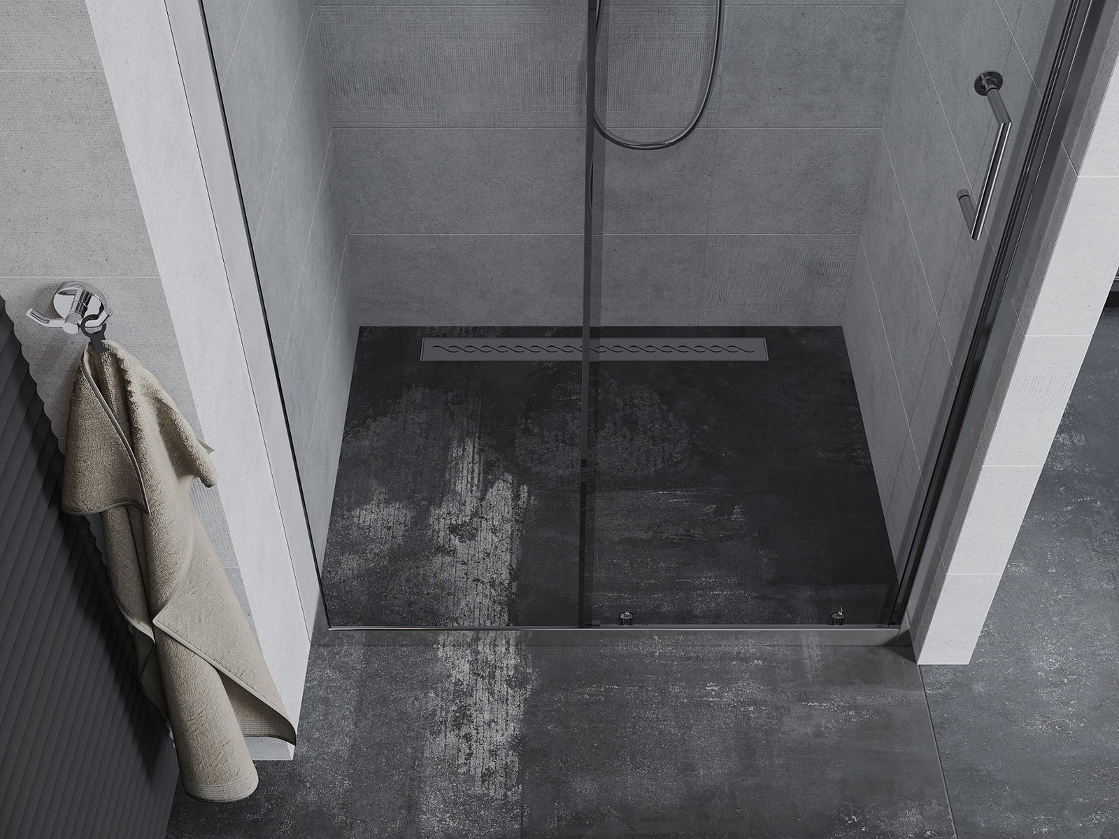 Praktická a pohodlná rukojeť je vyrobena z odolného a trvanlivého kovu. Moderní tvar ve spojení s povrchovou úpravou, která ladí s barvou profilů, dodává celku moderní a stylový vzhled, zdůrazňující estetiku každé koupelny.