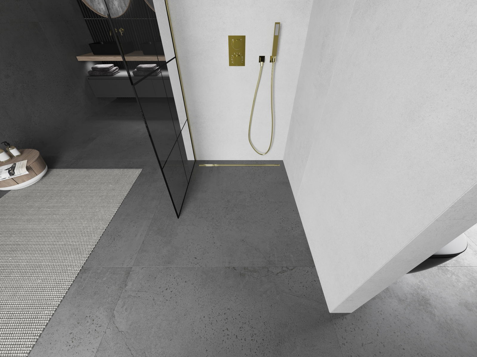 Mexen Kioto sprchová stěna Walk-in 70 x 200 cm, černá mřížka 8 mm, zlatá - 800-070-101-50-77