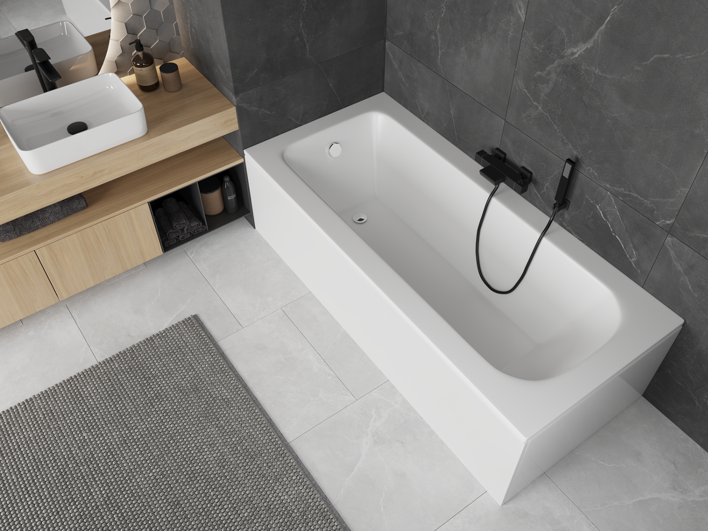 Použití akrylu v koupelně je velmi praktickým řešením. Akryl dobře udržuje teplotu vody, čímž zabraňuje jejímu rychlému ochlazení. Má také akustické vlastnosti, díky kterým snižuje hluk v koupelně.