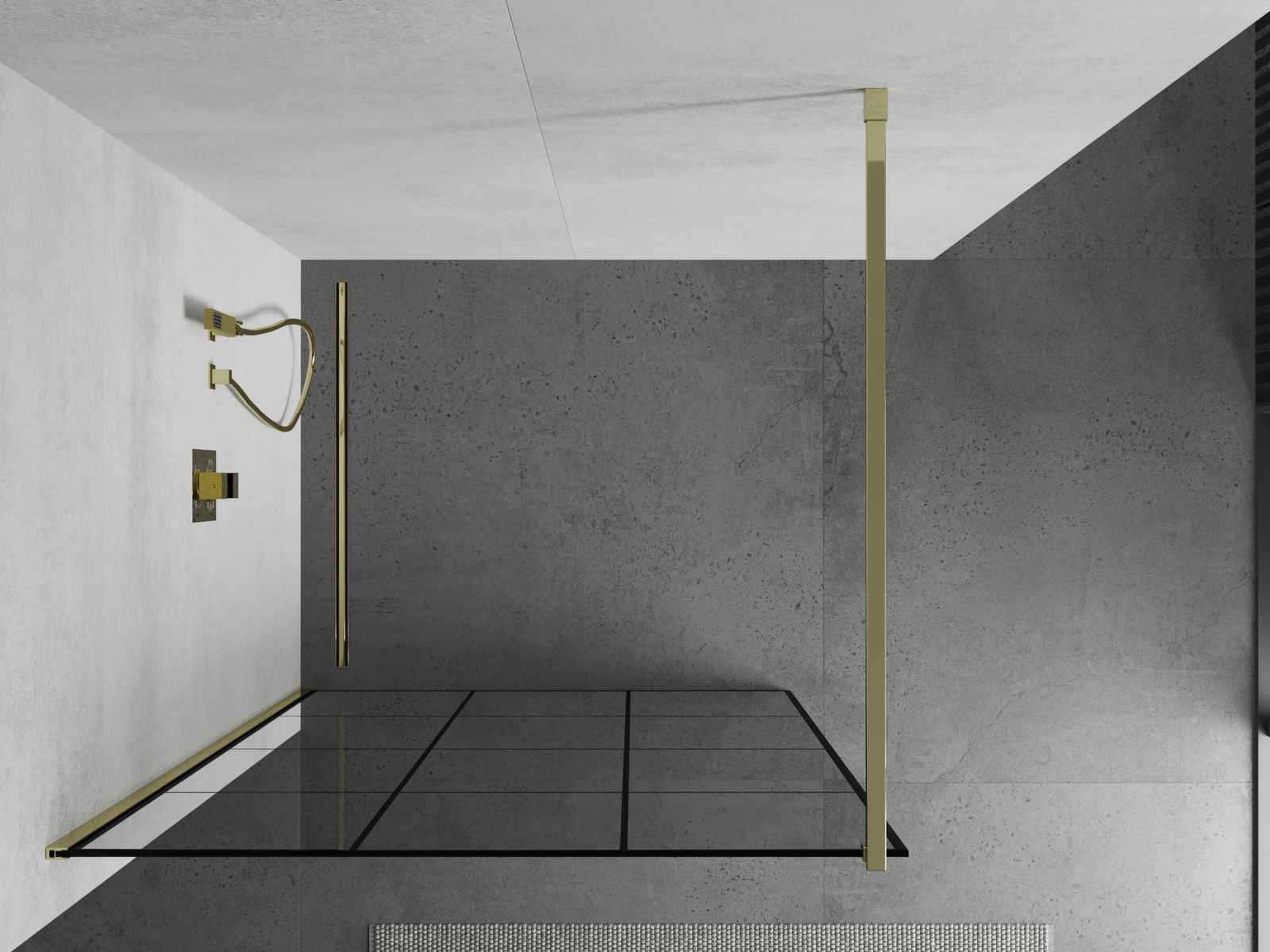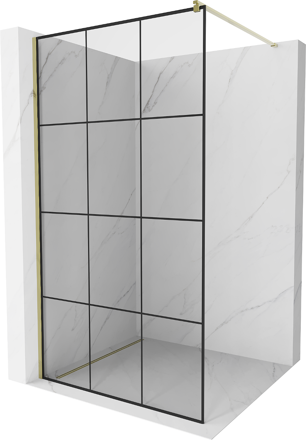 Mexen Kioto sprchová stěna Walk-in 100 x 200 cm, černá mřížka 8 mm, zlatá - 800-100-101-50-77