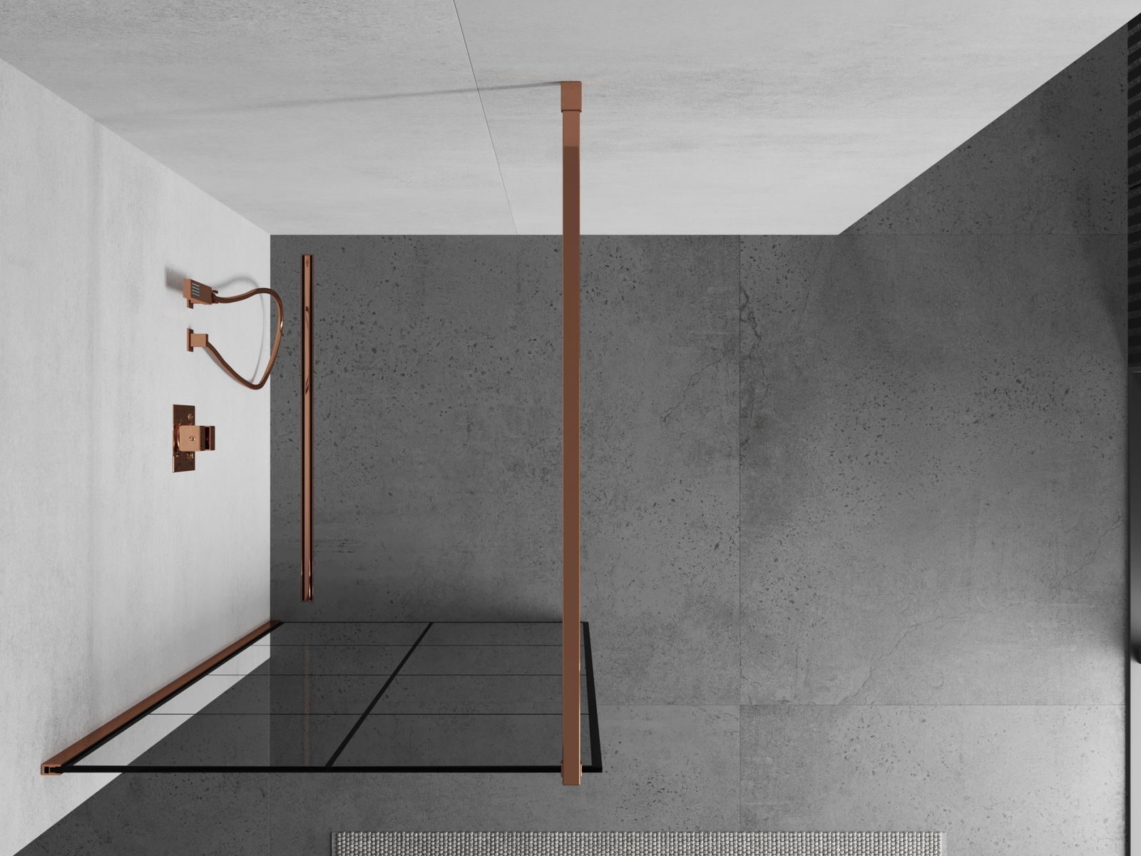 Mexen Kioto sprchová stěna Walk-in 70 x 200 cm, černá mřížka 8 mm, růžové zlato - 800-070-101-60-77