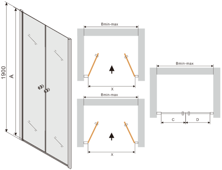 Díky použití univerzálního montážního systému mohou být sprchové dveře namontovány na pravé nebo levé straně, podle potřeby. Díky tomu můžete snadno navrhnout sprchu přizpůsobenou prostoru koupelny.