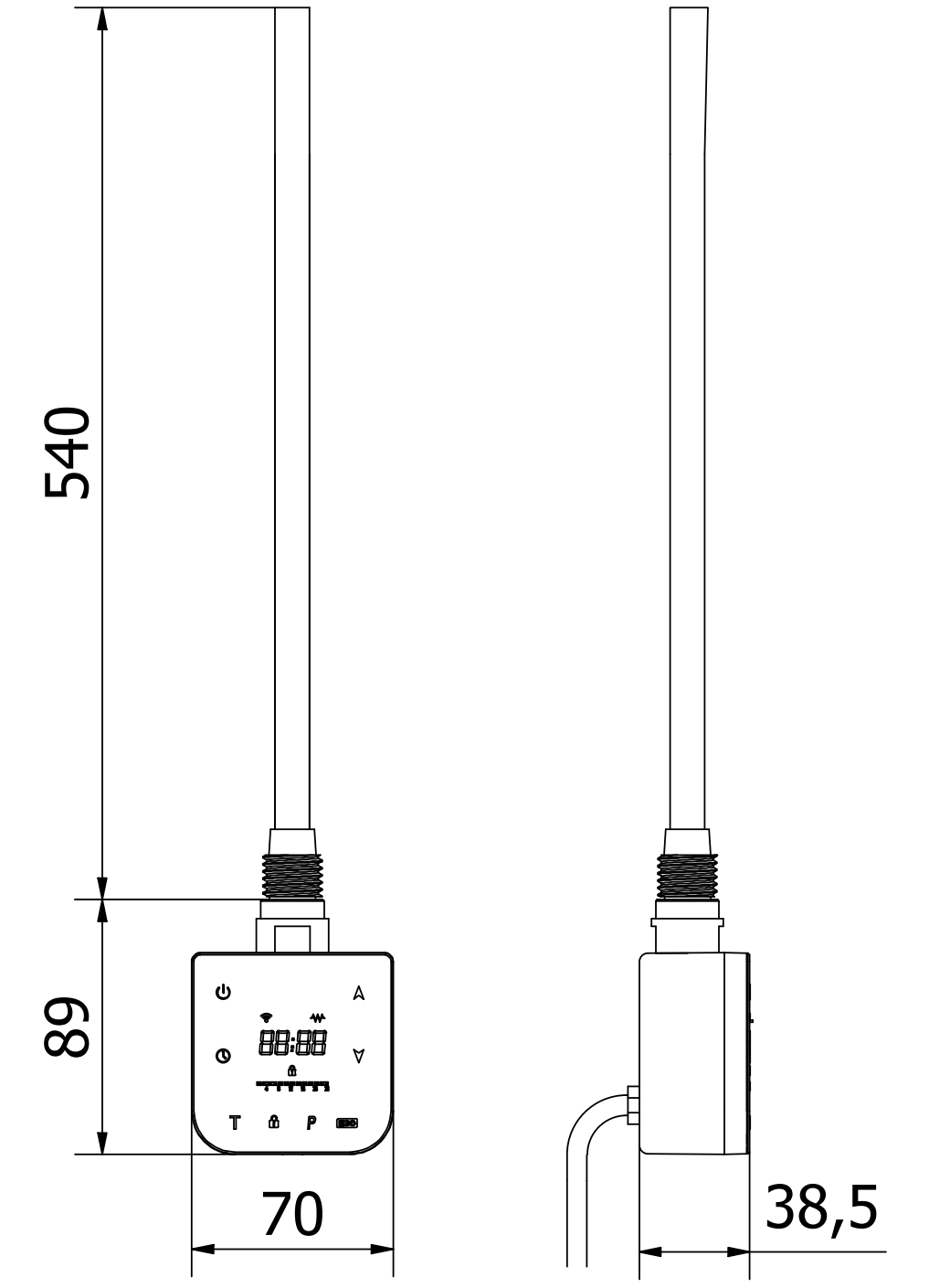 - W-Fi umožňuje ovládání topného tělesa prostřednictvím aplikace instalované na smartphonu nebo tabletu