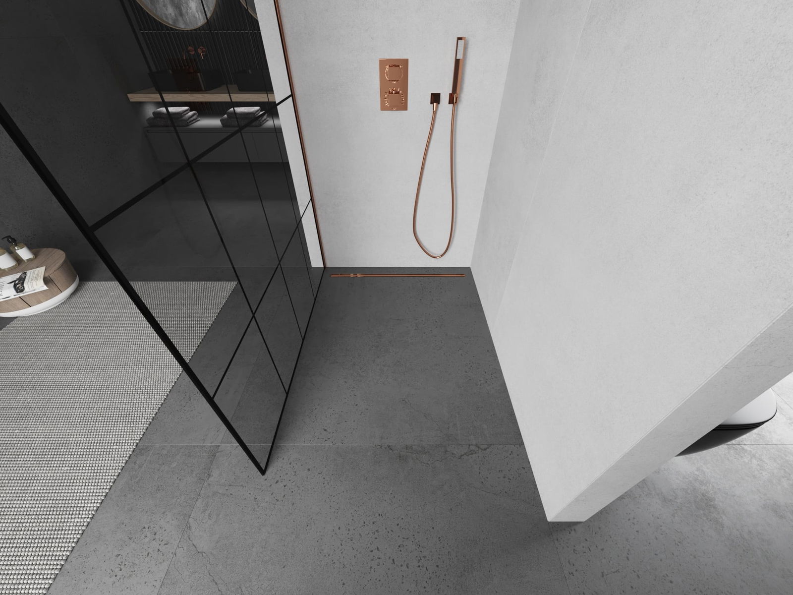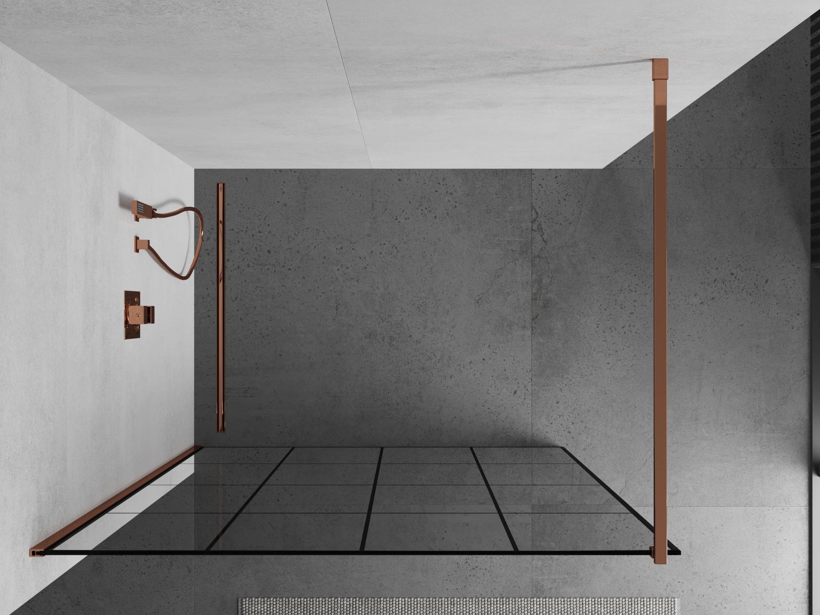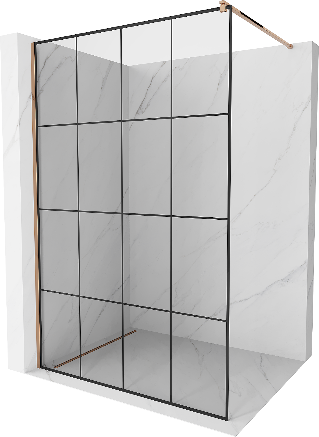 Mexen Kioto sprchová stěna Walk-in 130 x 200 cm, černá mřížka 8 mm, růžové zlato - 800-130-101-60-77