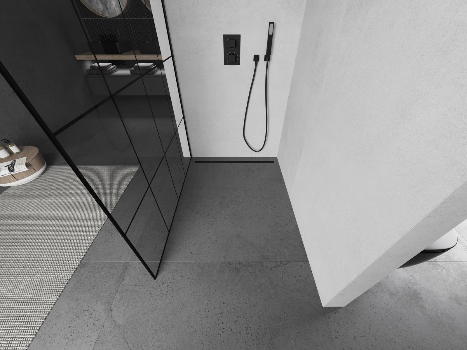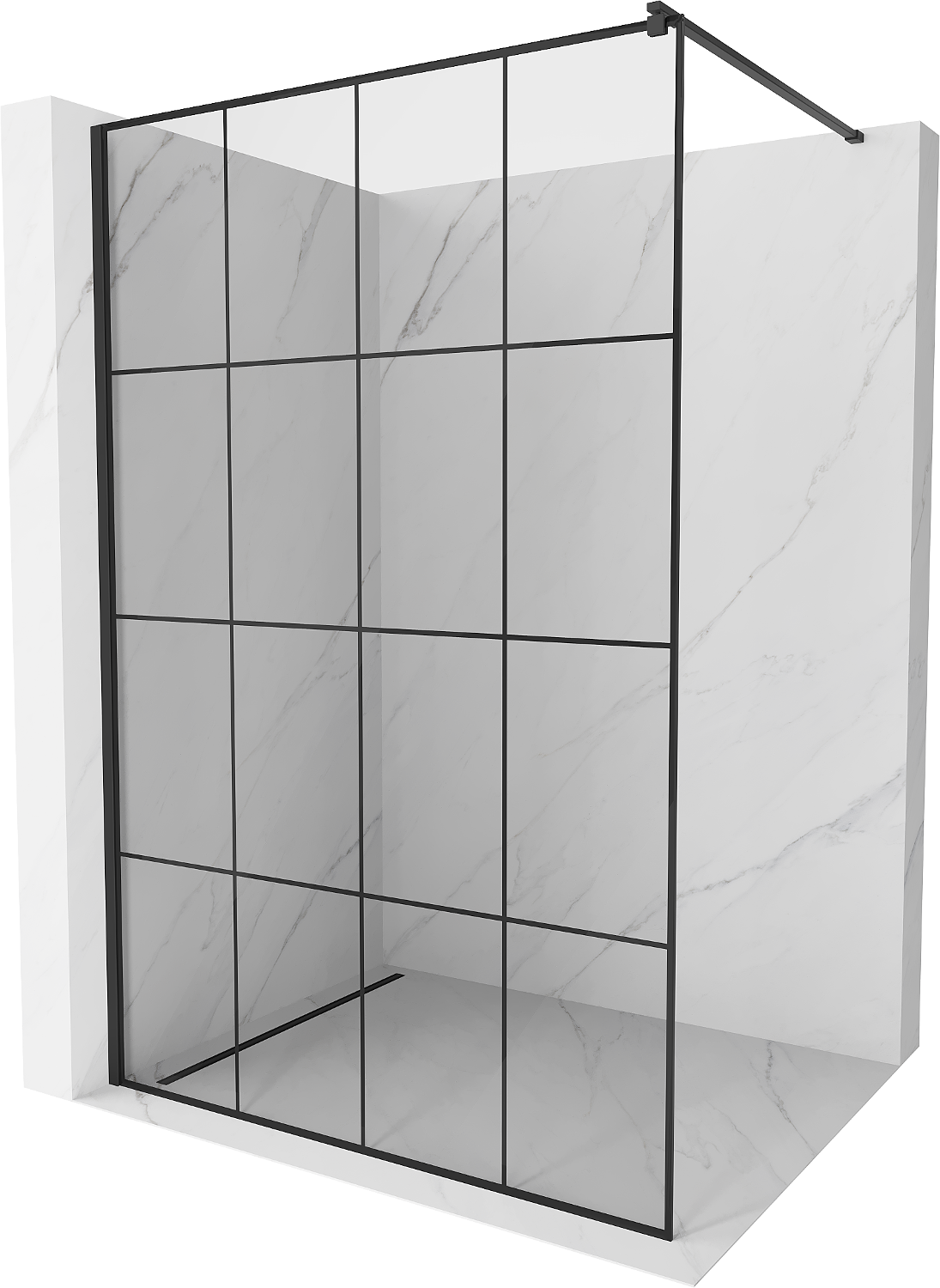 • Mexen Kioto sprchová stěna Walk-in 130 x 200 cm, černá mřížka 8 mm, černá - 800-130-101-70-77