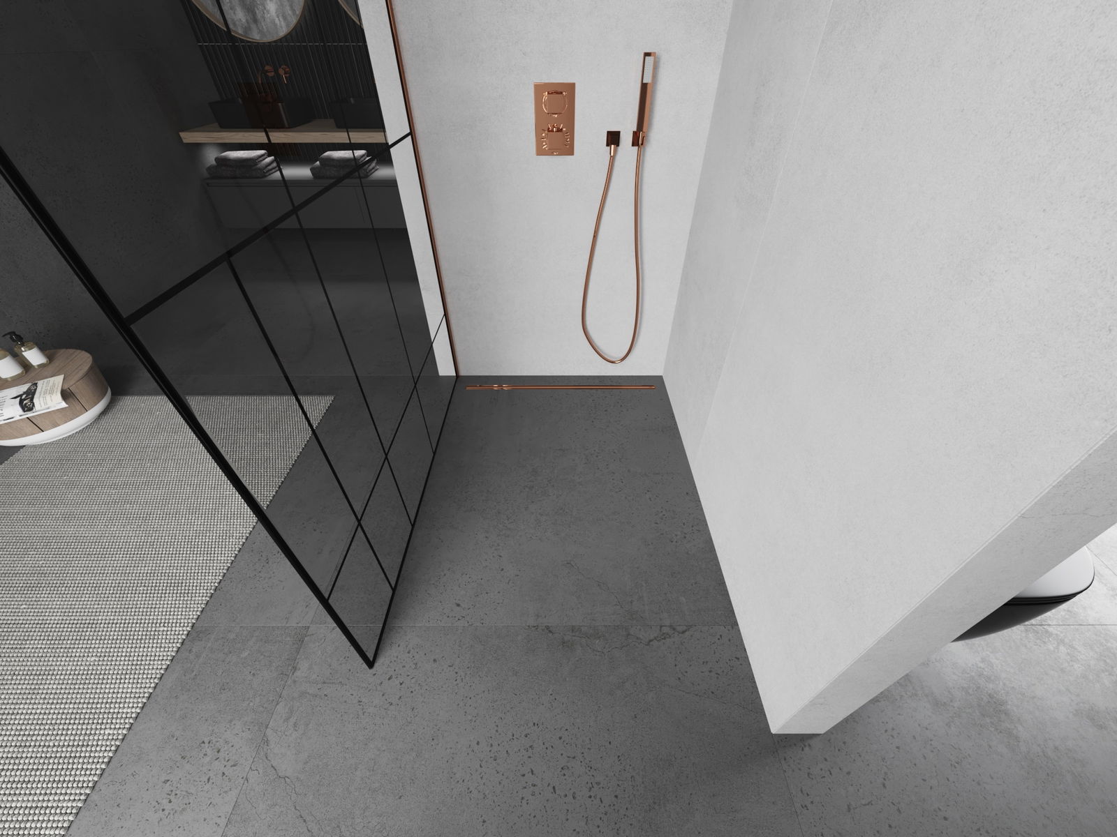 Mexen Kioto sprchová stěna Walk-in 80 x 200 cm, černý vzor 8 mm, růžové zlato - 800-080-101-60-78