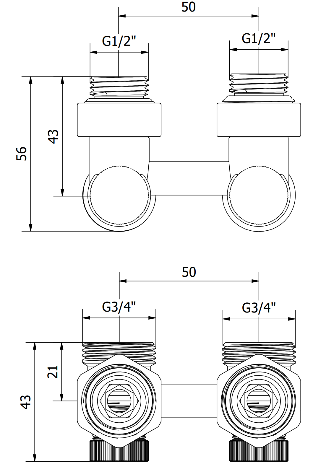 Radiátorový ventil s připojením se závitem 1/2" a 3/4" je populární typ ventilu používaný v topných systémech. Tyto závity jsou standardní v mnoha topných systémech a slouží k připojení radiátorů k instalaci centrálního vytápění.