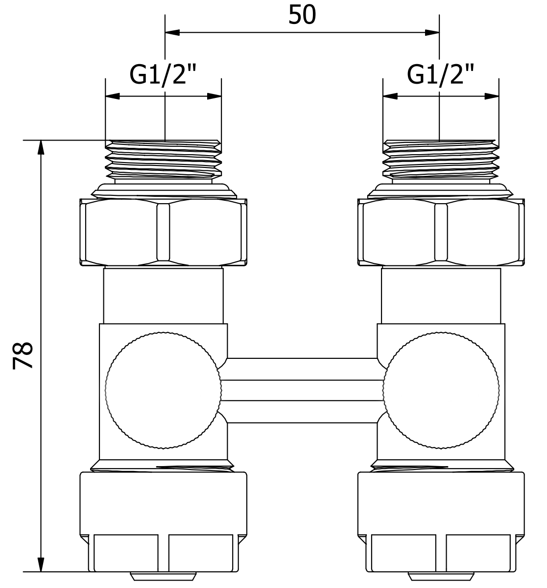 Spodní připojení s roztečí 50 mm