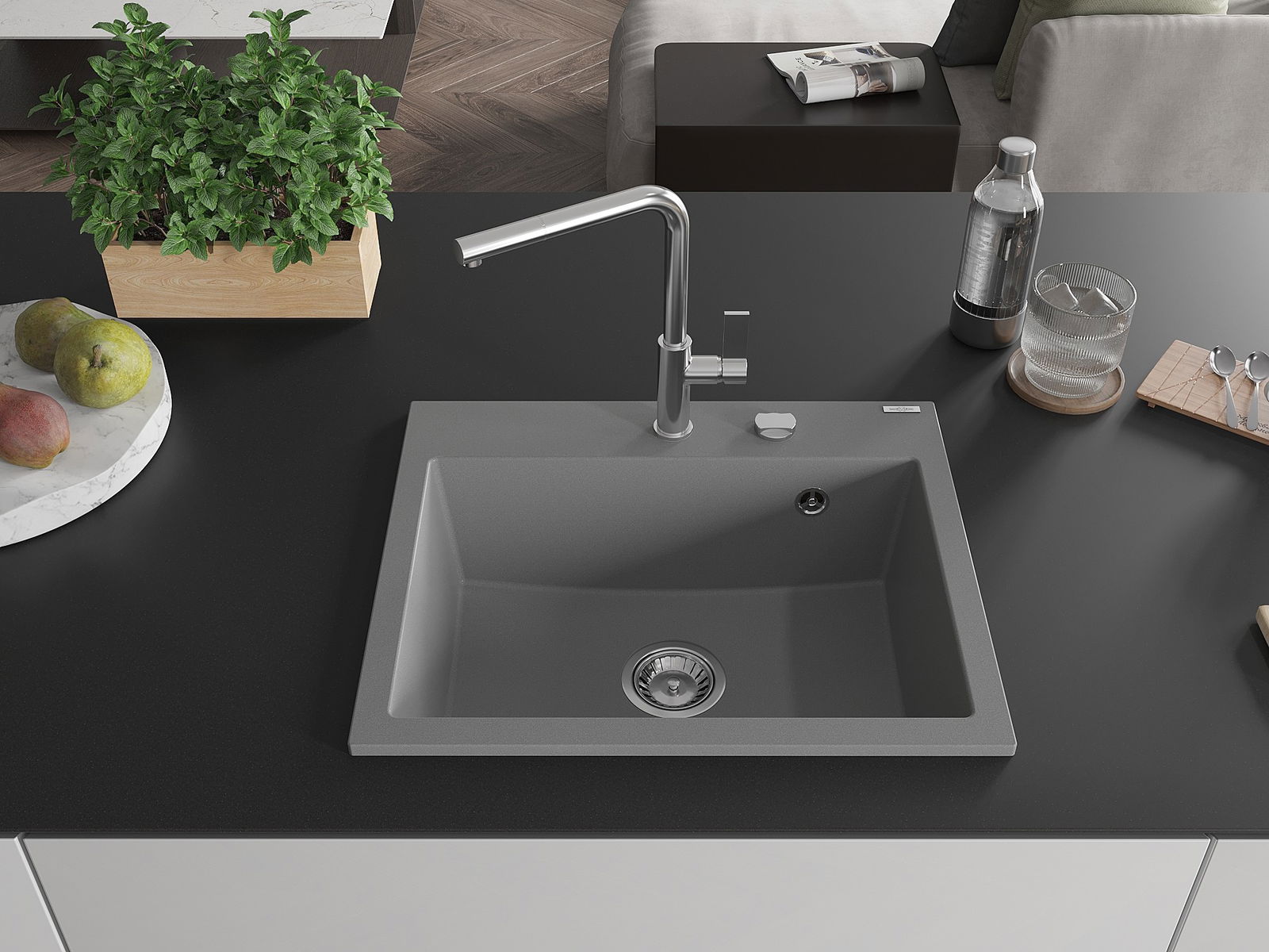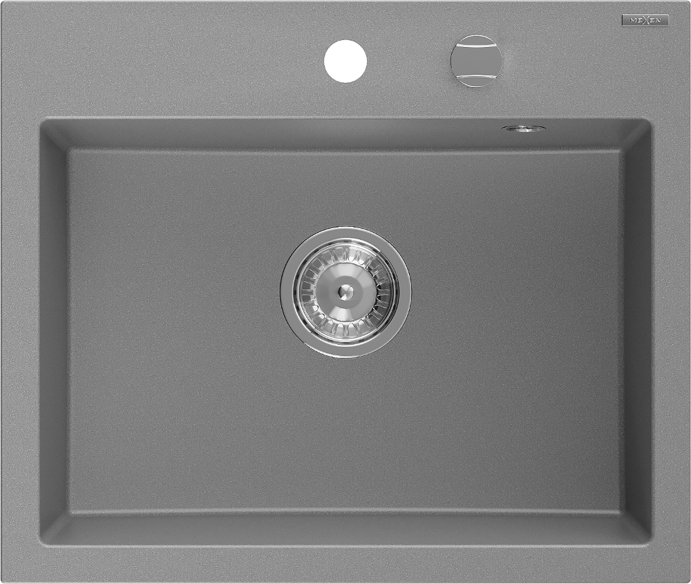 Mexen Oscar granitový dřez 1-komorový 580 x 490 mm, šedý, sifon chromový - 6519581000-71