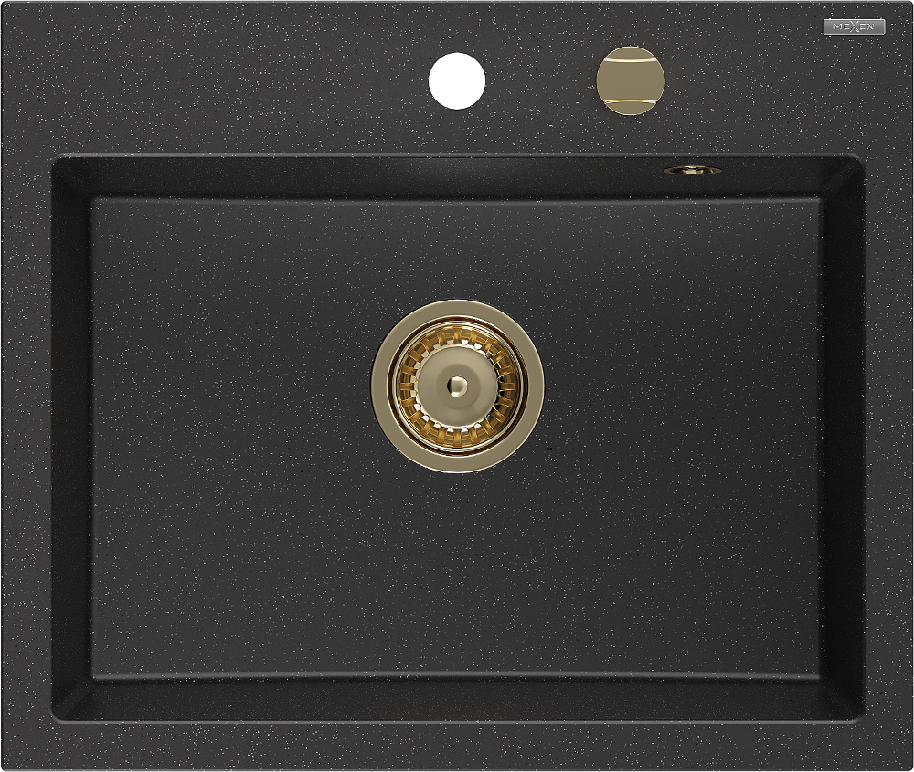 Mexen Oscar granitový dřez 1-komorový 580 x 490 mm, černý/stříbrný metalik, sifon zlatý - 6519581000-73-G