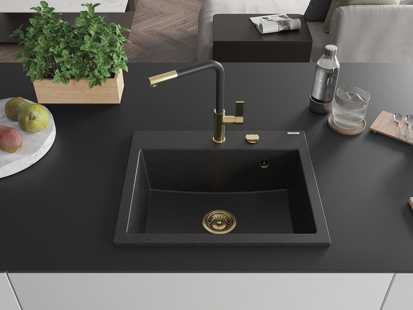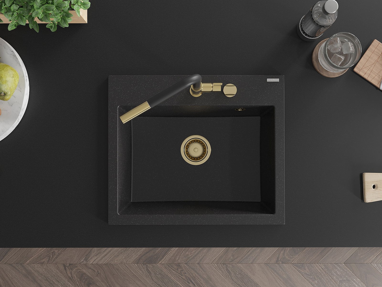 Dřez má předfrézovaný otvor o průměru 35 mm k samostatnému proražení. Může být použit například k montáži dávkovače na tekutinu, který eliminuje přítomnost plastových lahví v kuchyni a dodá jí elegantní finiš.