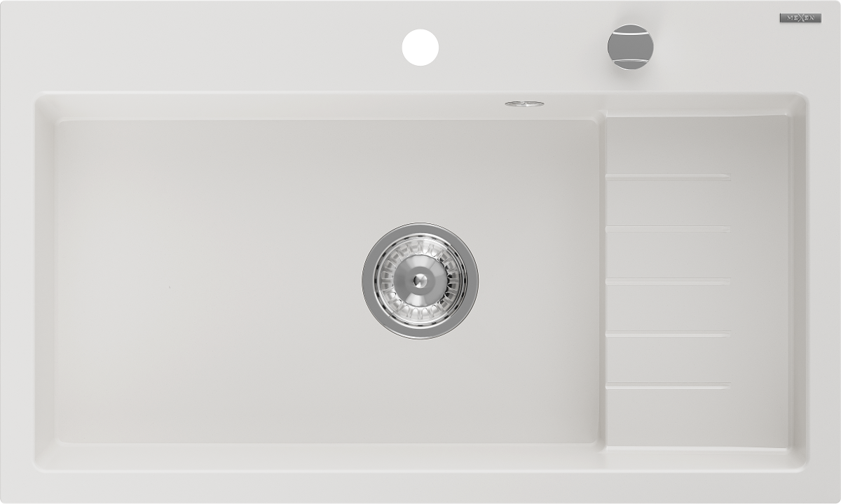 Mexen Omar jednokomorový žulový dřez 800 x 480 mm, bílý, chromový sifon - 6520801005-20