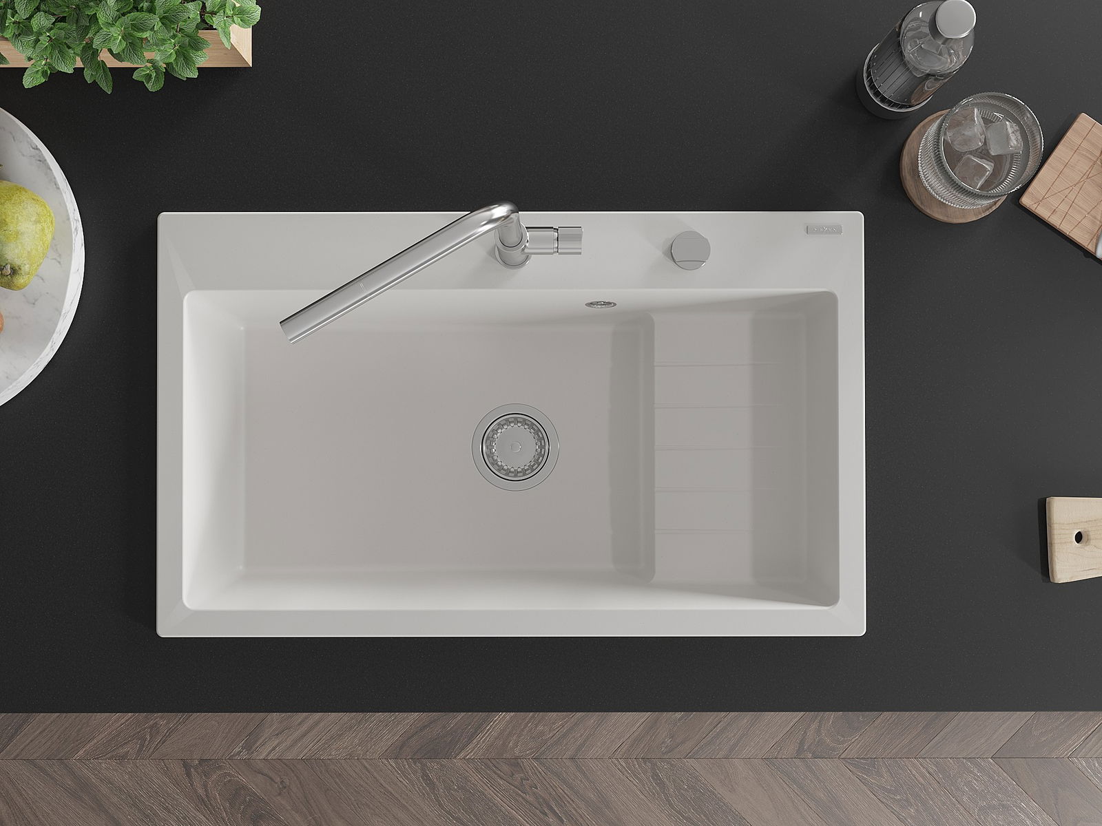 Povrch dřezu je velmi dobře vytvrzený, vyznačuje se výjimečnou odolností proti mechanickému poškození a poškrábání. Trvanlivý materiál umožňuje užívat si dobrý vzhled dřezu po mnoho let používání.