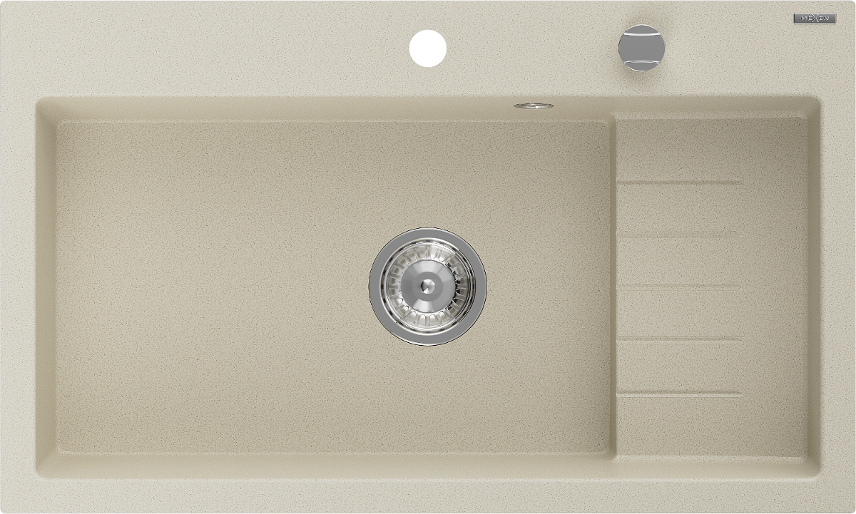 Povrch dřezu je odolný proti skvrnám a zabarvení, což usnadňuje jeho čištění a zachovává jeho barvu po dlouhou dobu používání. Estetický a praktický doplněk každé kuchyně.