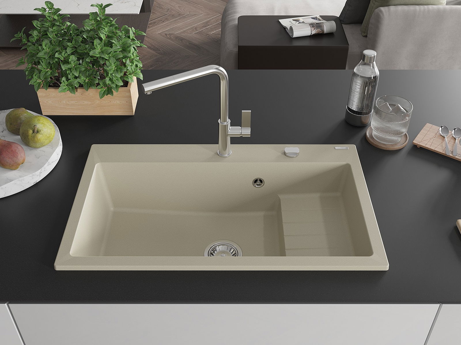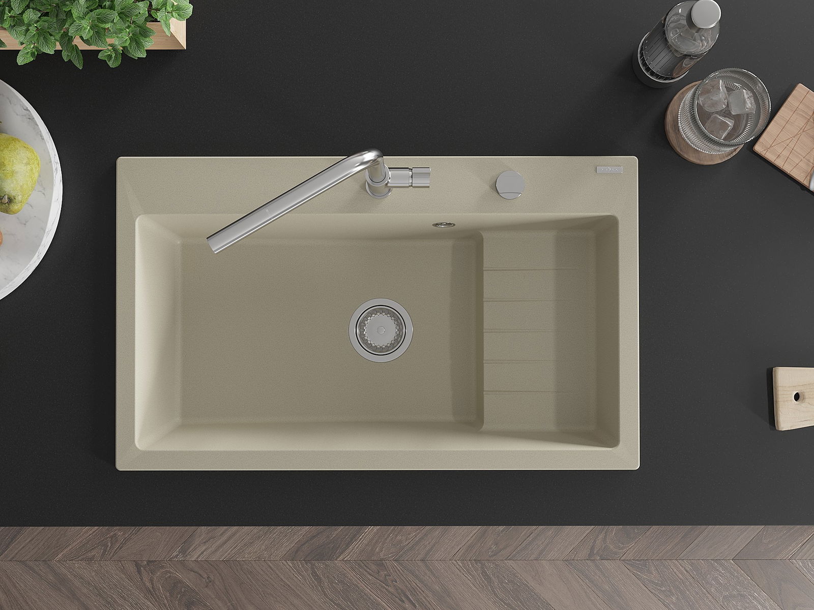 Dřez byl vyroben z vysoce kvalitního granitu. Představuje elegantní a především praktický doplněk každé kuchyně, bez ohledu na její styl. Vysoká kvalita a trvanlivost granitu zajišťují dlouholeté používání.