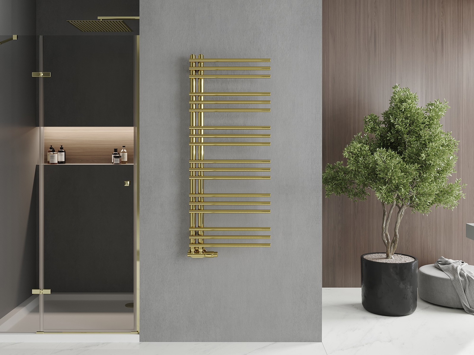 Koupelnový radiátor Mexen Neptun je nejen funkční, ale také stylové řešení pro každou koupelnu. Díky rozměrům 1200 x 500 mm a zlatému povrchu se dokonale hodí do moderních interiérů. Vyroben z oceli, zajišťuje spolehlivost a trvanlivost. Výkon 360 W zaručuje efektivní vytápění, a maximální provozní teplota 95 °C a ohnivzdornost třídy A1 potvrzují jeho bezpečnost. Montážní sada a možnost instalace topné tyče činí z tohoto radiátoru všestrannou volbu.