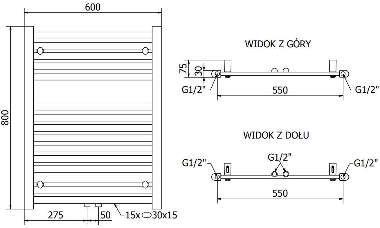 - 4xG ½″ z horní a spodní části na pravé nebo levé straně
