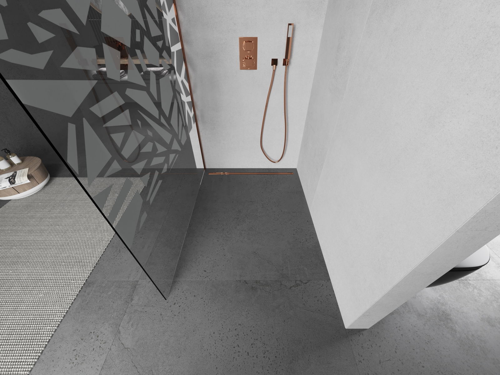 Mexen Kioto sprchová stěna Walk-in 70 x 200 cm, bílý vzor 8 mm, růžové zlato - 800-070-101-60-85