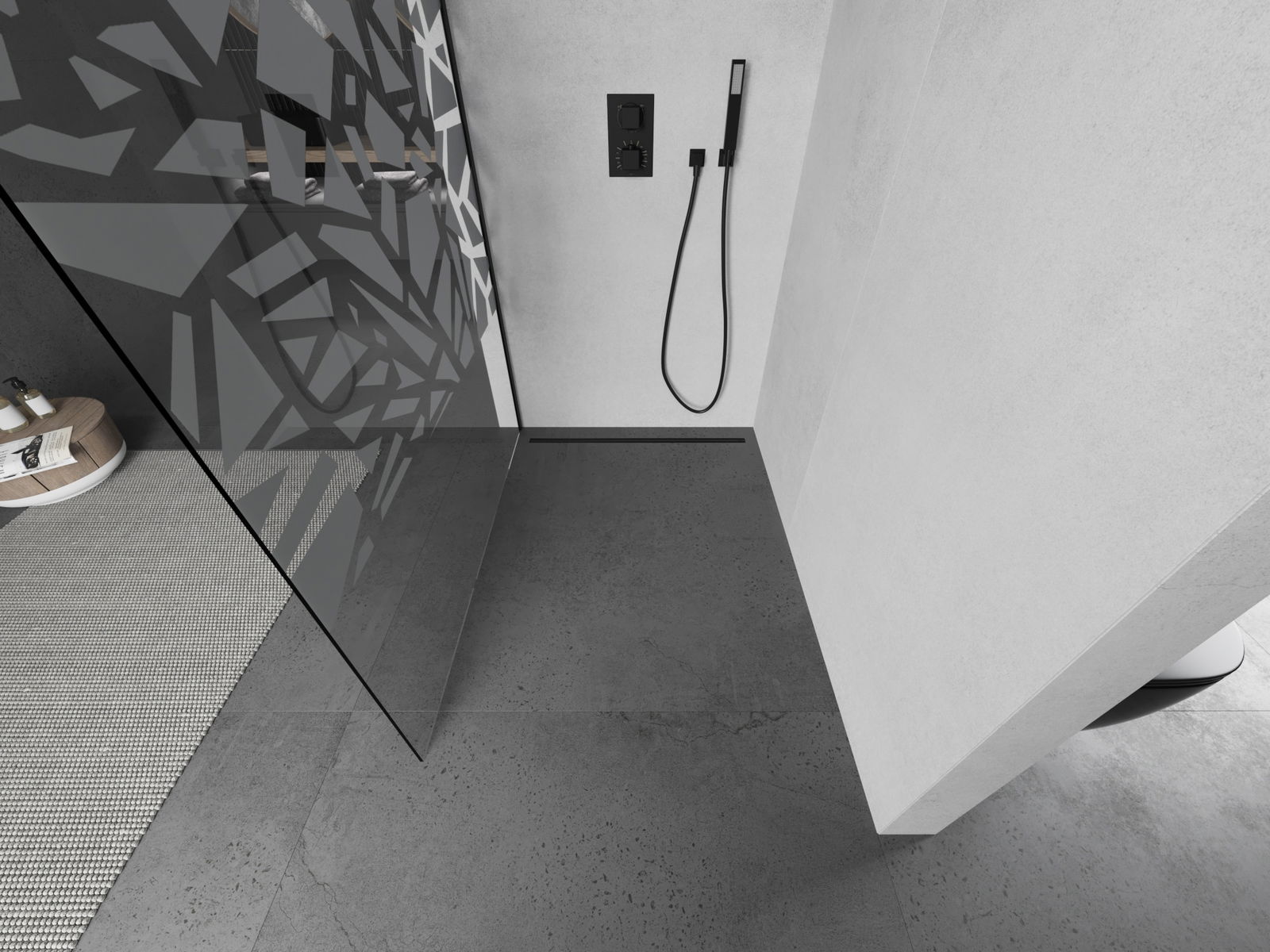 Mexen Kioto sprchová zástěna 130 x 200 Walk-in cm, bílý vzor 8 mm, černá - 800-130-101-70-85