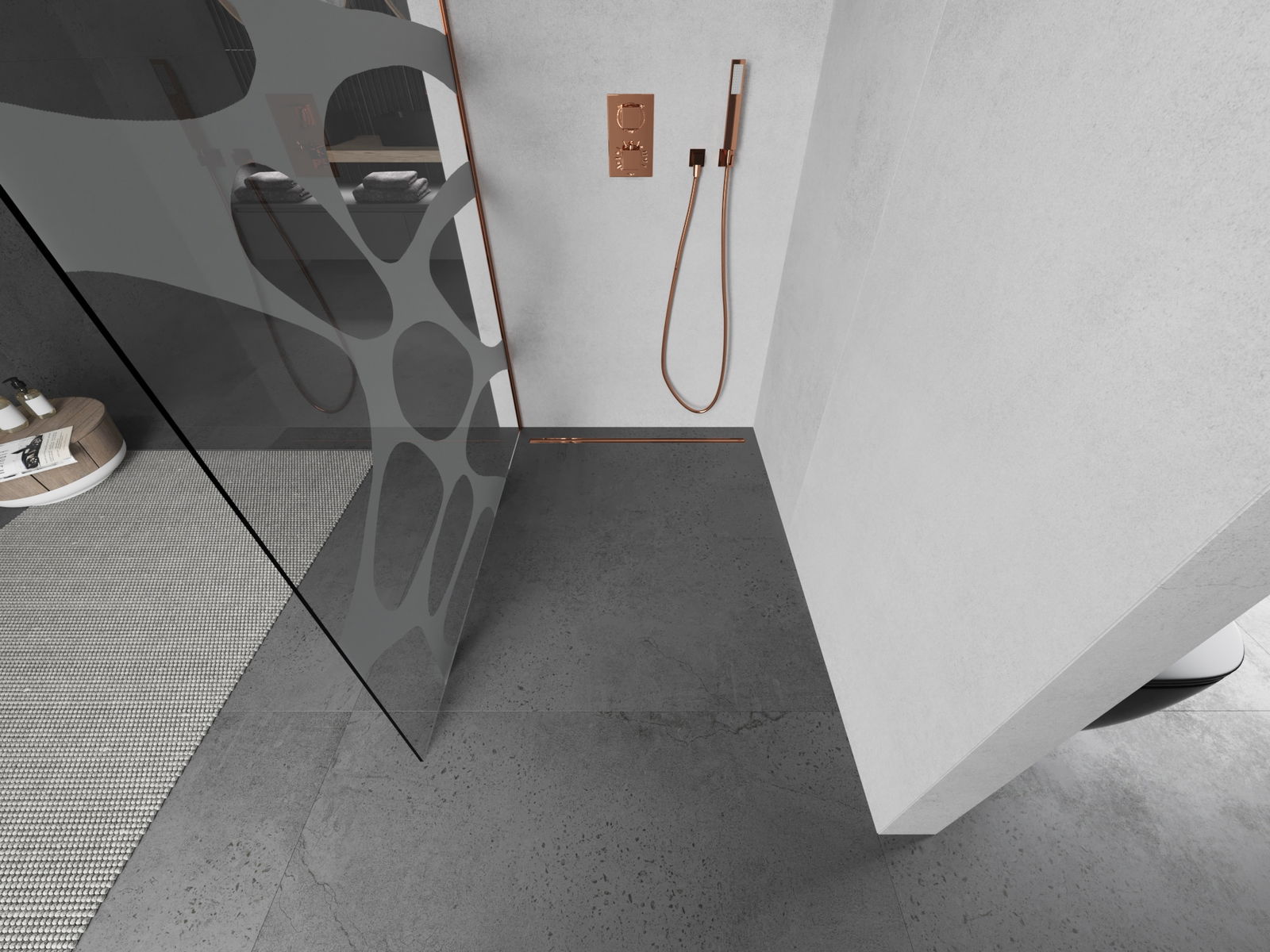 Mexen Kioto sprchová stěna Walk-in 140 x 200 cm, bílá vlna 8 mm, růžové zlato - 800-140-101-60-97