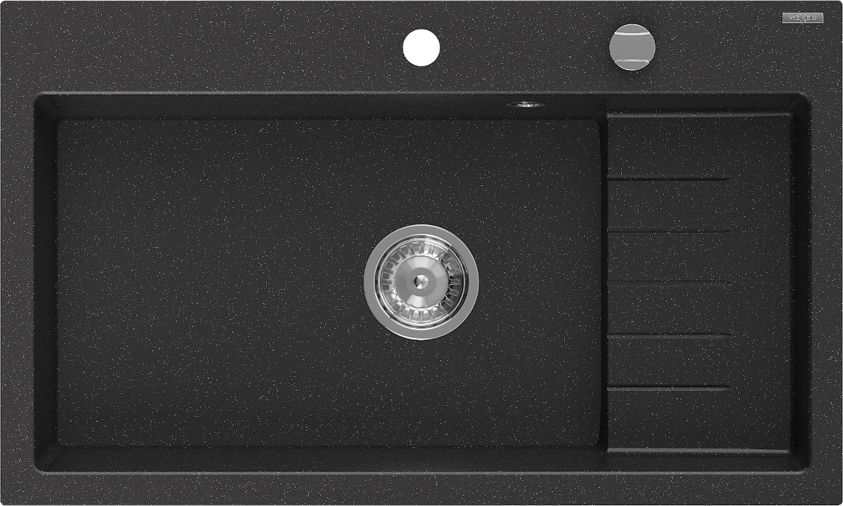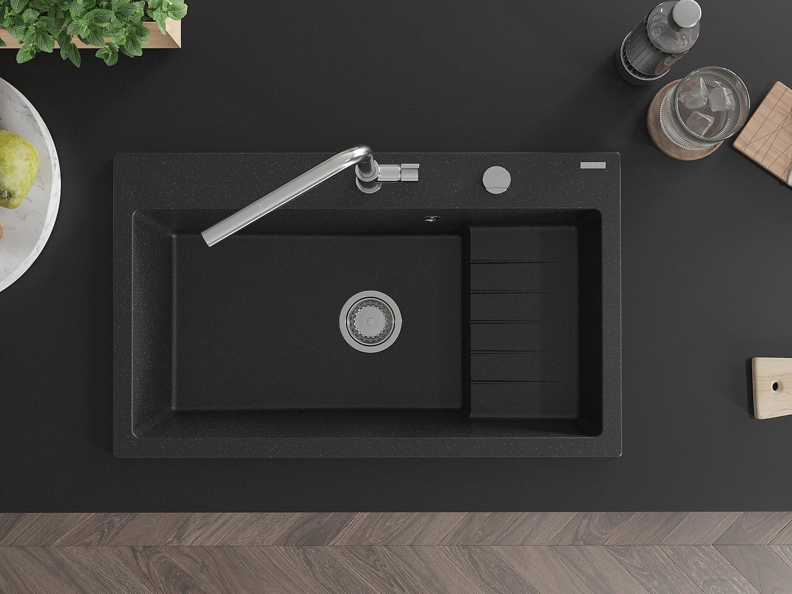 • Mexen Omar žulový dřez 1-komorový 800 x 480 mm, černý/stříbrný metalik, sifon chrom - 6520801005-73