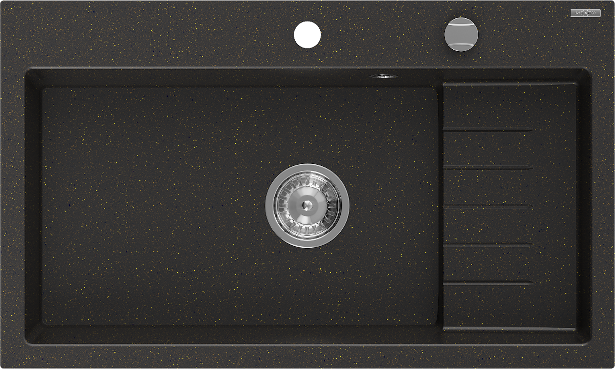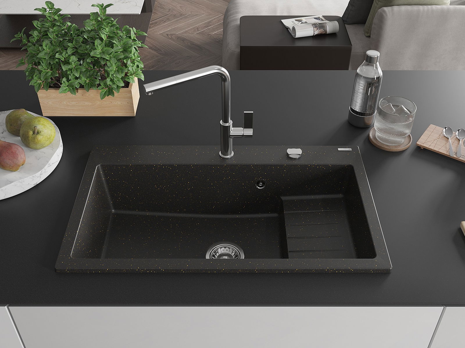 Mexen Omar granitový dřez 1-komorový 800 x 480 mm, černý/zlatý metalik, sifon chrom - 6520801005-75