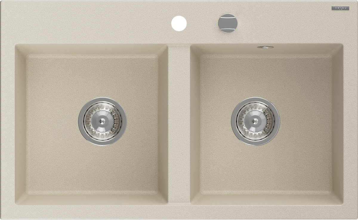 Mexen Hektor dřez žulový 2-komorový 800 x 480 mm, béžový, sifon chrom - 6521802000-69
