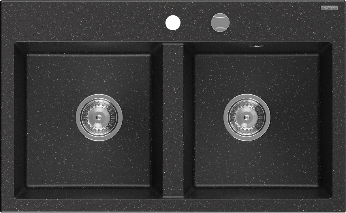 Mexen Hektor dvoukomorový granitový dřez 800 x 480 mm, černý/stříbrný metalik, sifon chrom - 6521802000-73