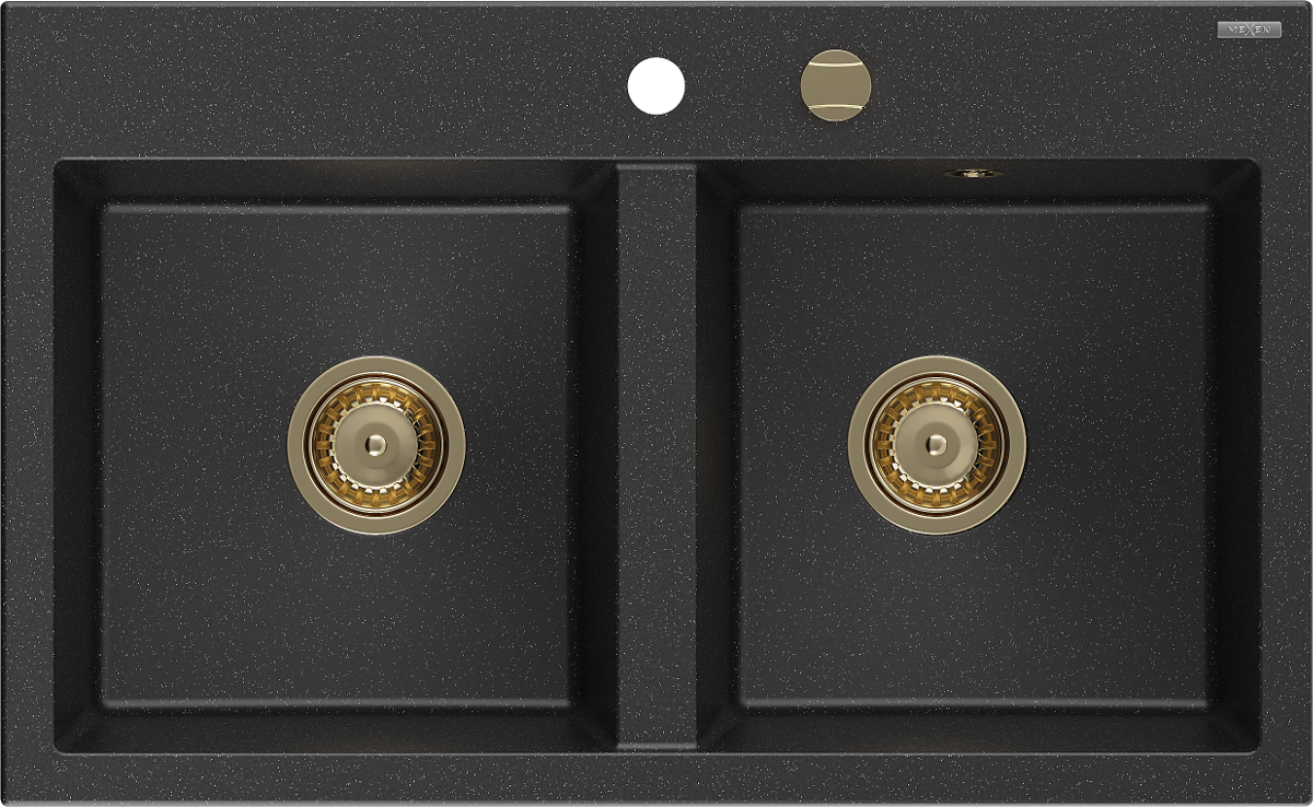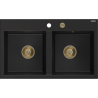 Mexen Hektor dřez z granitu 2-komorový 800 x 480 mm, černý/stříbrný metalik, sifon zlatý - 6521802000-73-G
