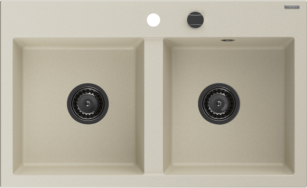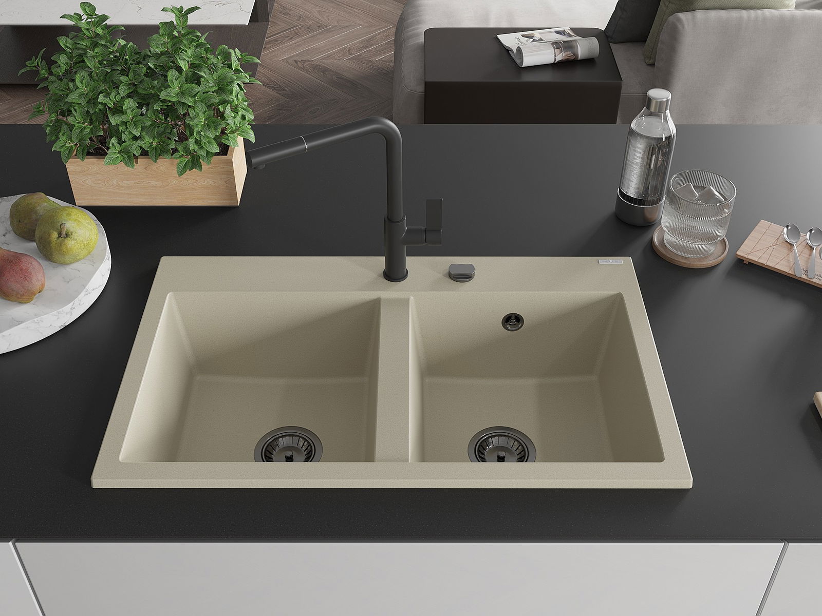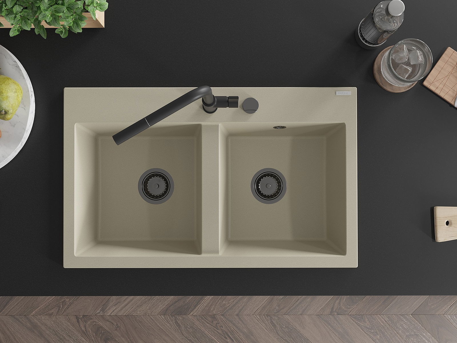 Mexen Hektor dvojkomorový žulový dřez 800 x 480 mm, béžový, černý sifon - 6521802000-69-B