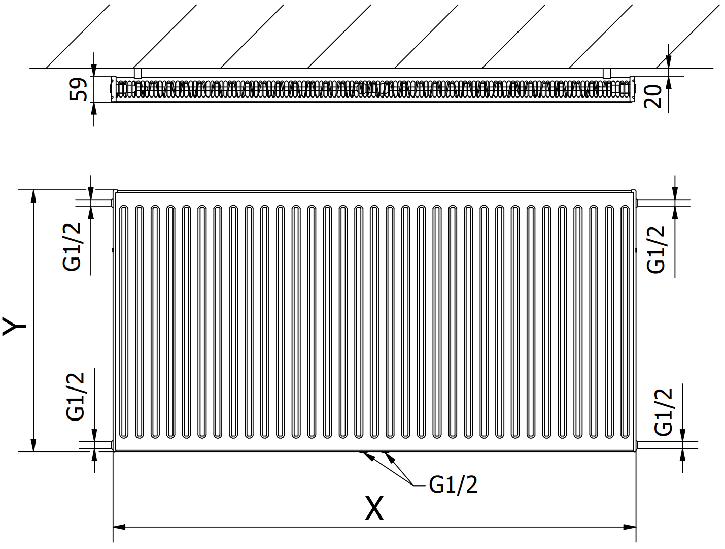 - 2xG ½″ spodní středové