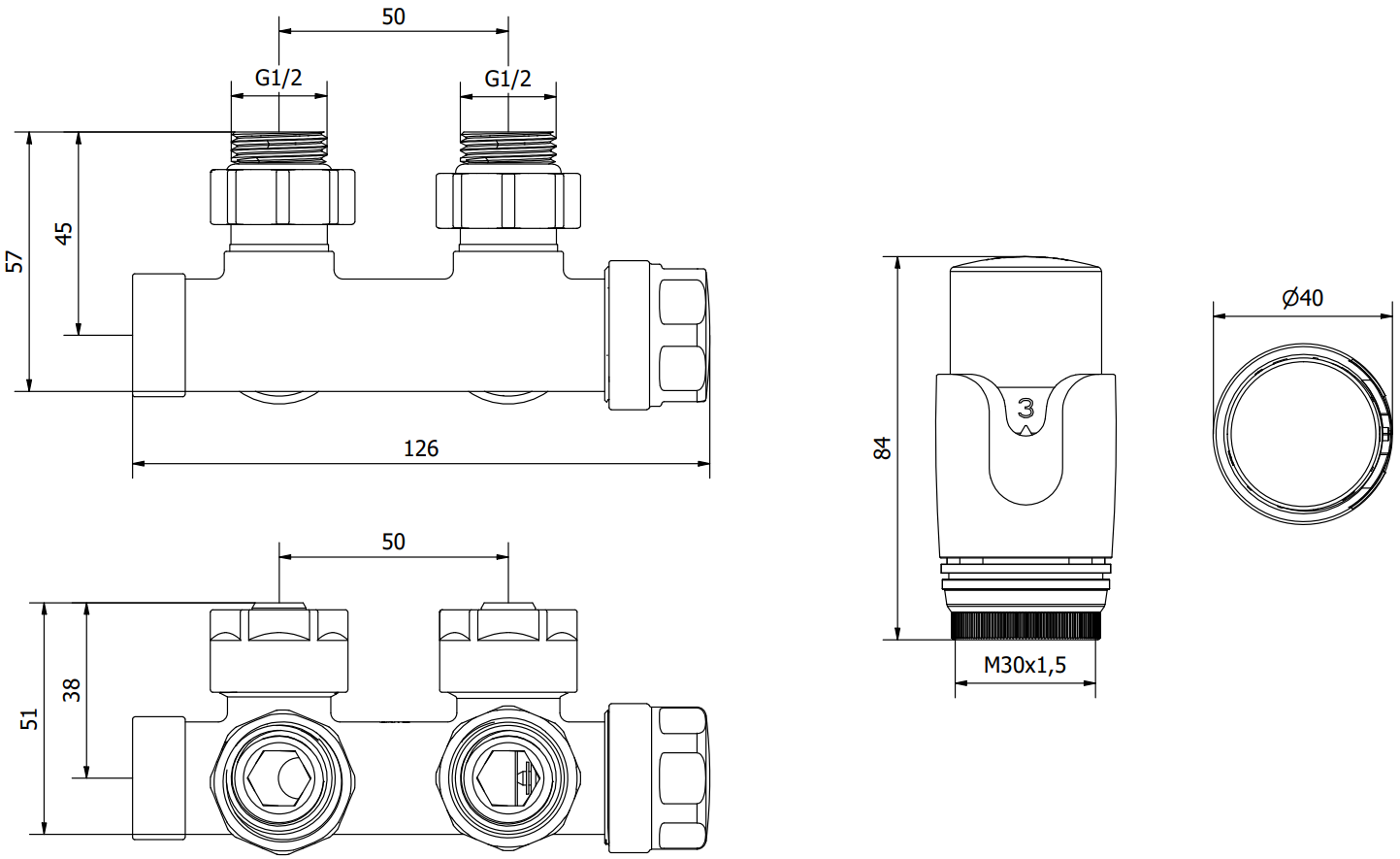 Možnost připojení hlavice z levé nebo pravé strany ventilu
