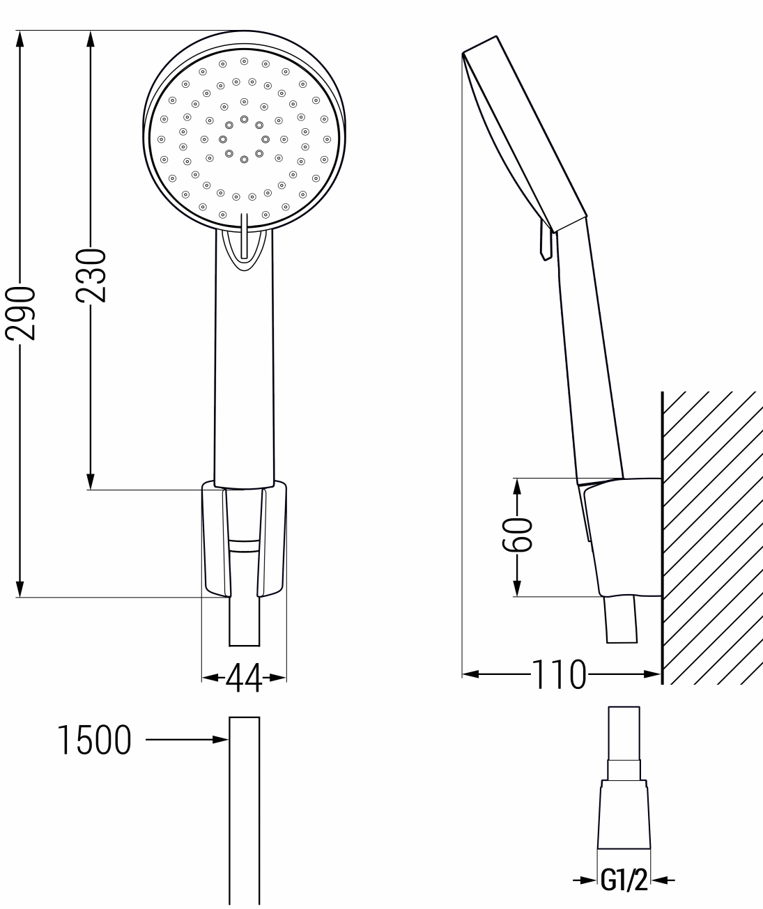 Sprchová hlavice má tři druhy proudu, které se mění pomocí přepínače. Poskytuje plnou svobodu a možnost přizpůsobení potřebám uživatele, nabízí jemný nebo silnější a více koncentrovaný proud vody.